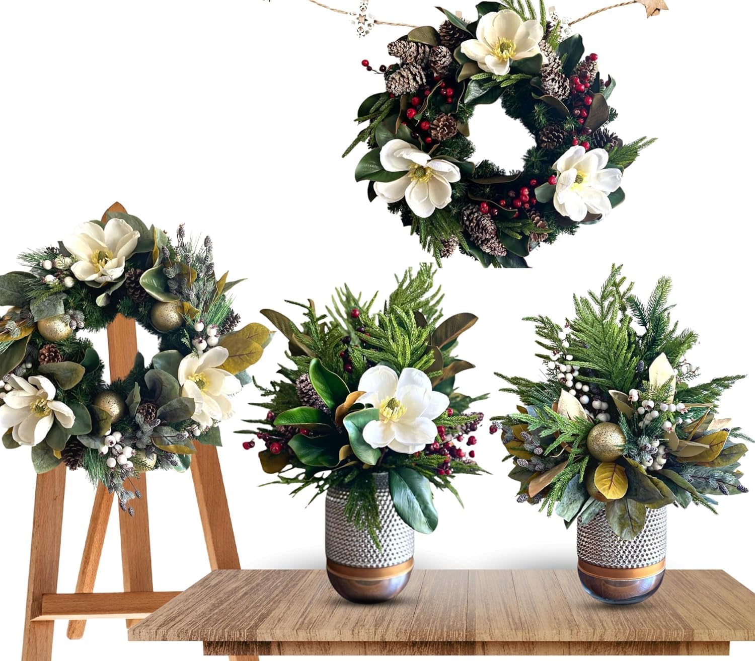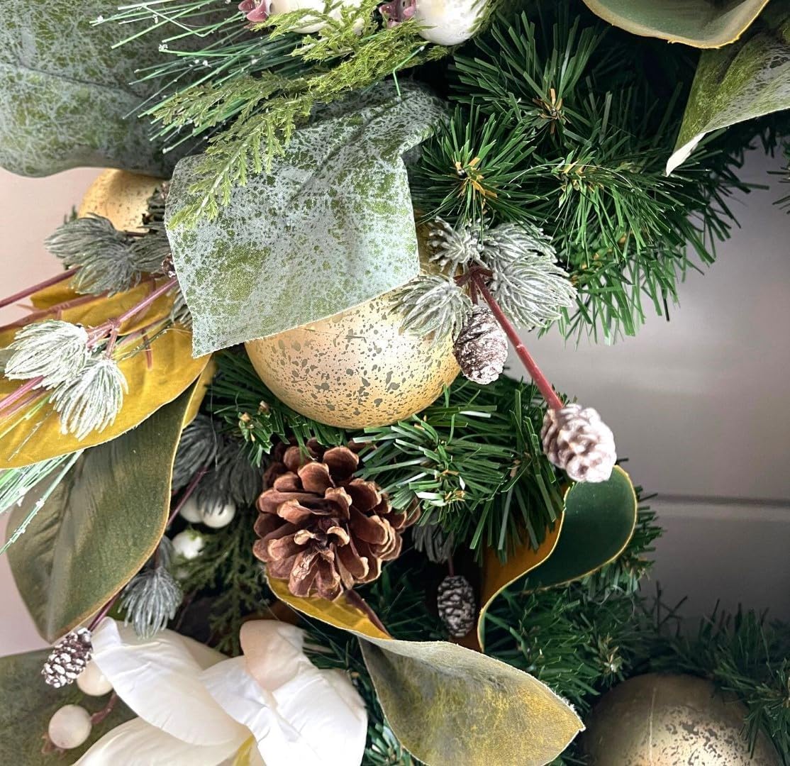 | Recommended Uses For Product | This floral collection with white magnolias, magnolia leaves, and red berries brings not only merriment for the season but also peace, luck, and good fortune. Lasting periods of happiness and success await yourself and your family. Give this as a beautiful gift to yourself or anyone else you love! |