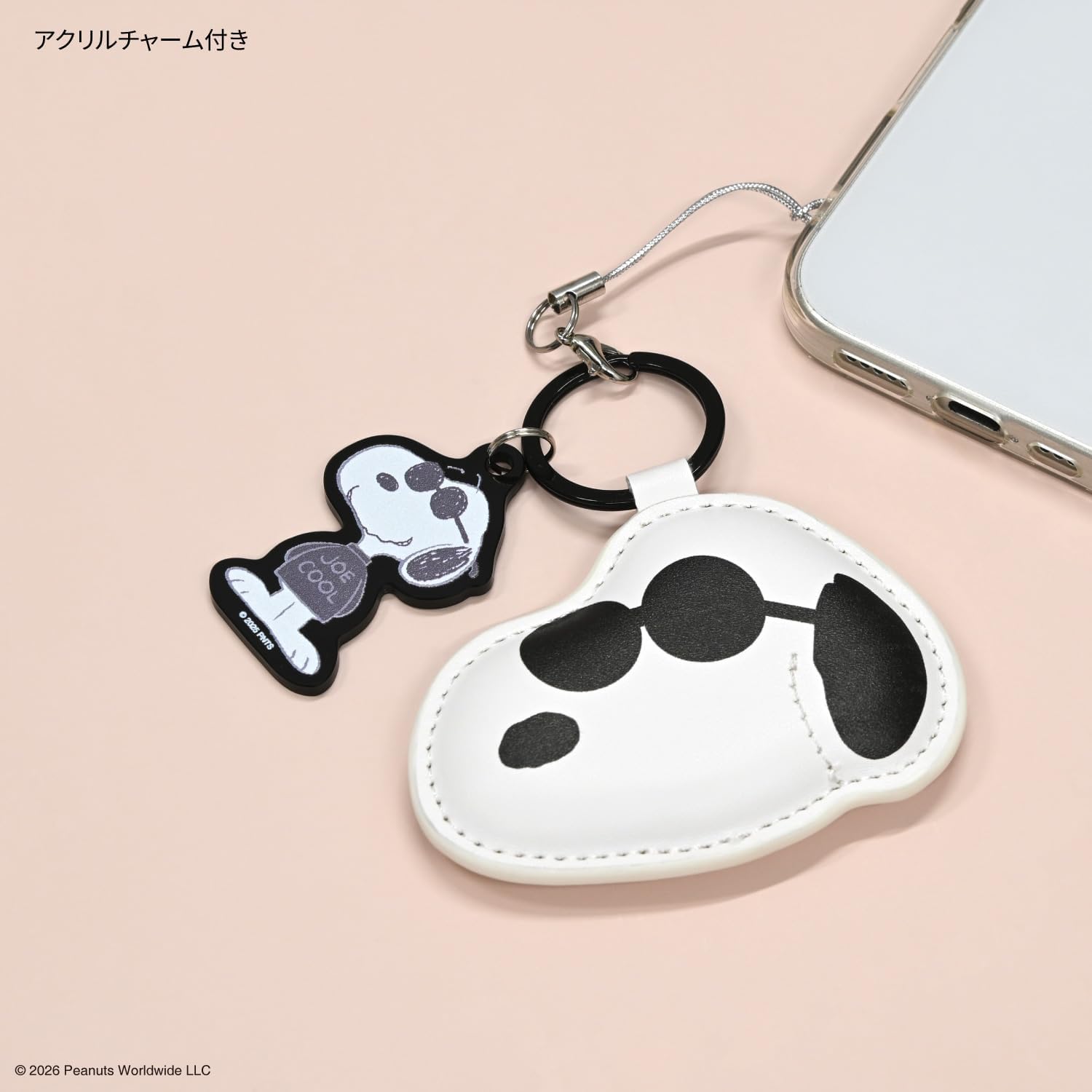 Mobile strap with PU leather charm. Can be attached to a smartphone case or bag, or used as a key holder. Large size charm makes a statement Acrylic strap included The color of the actual product may differ depending on your monitor settings, lighting in your room, etc. The design and specifications may change without prior notice. 2026 Peanuts Worldwide LLC