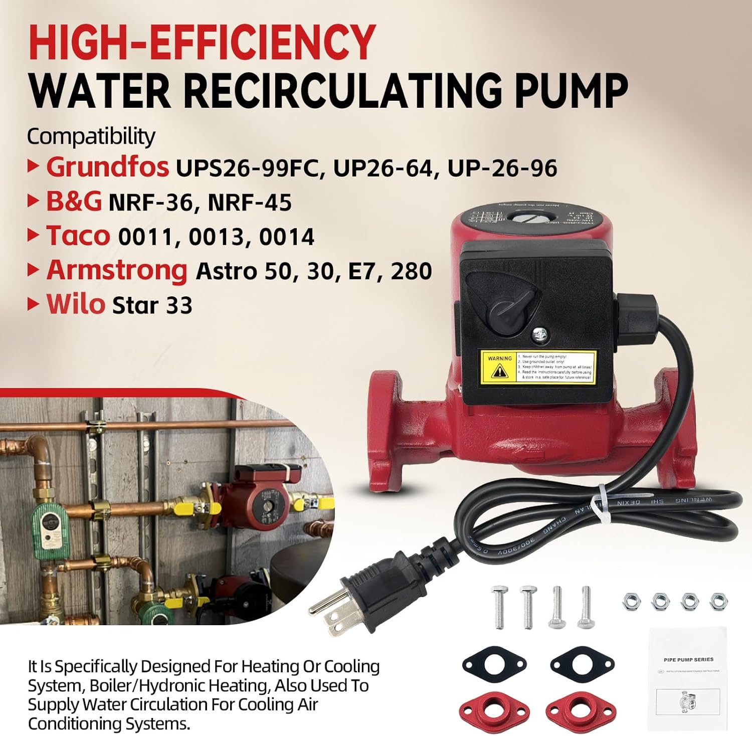 | Included Components | GPD25-10SFC Water Circulator Pump |