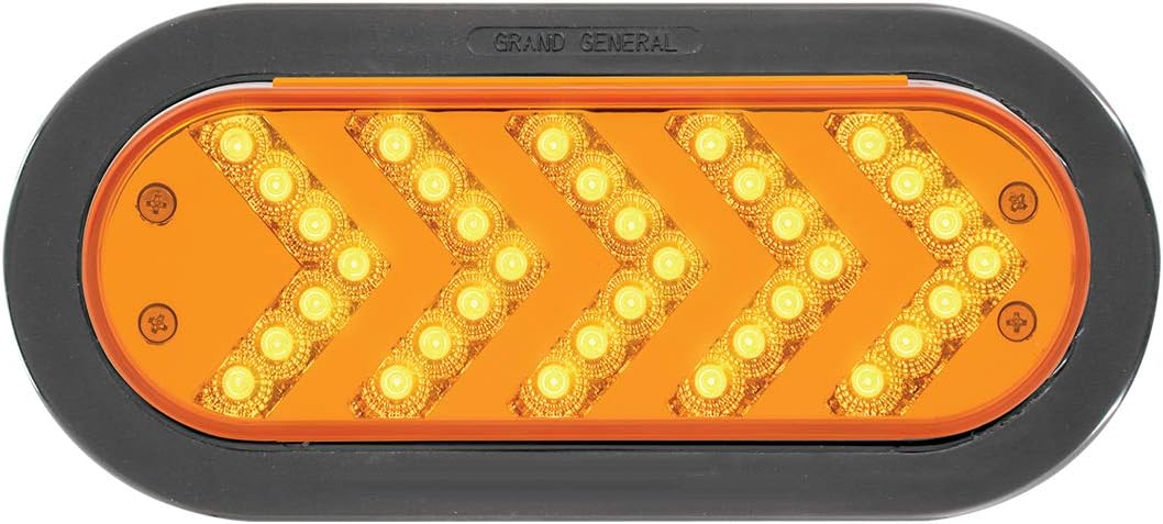 GRAND GENERAL is a leading manufacturer and distributor of high quality truck accessories since 1984 featuring an extensive selection of DOT approved lighting products, chrome accessories and more. LEDs are brighter and have lower amperage draw making it possible to add more lighting without upgrading your charging system. Upgrade your vehicle's lighting with GRAND GENERAL's Oval Amber Sequential 5-Arrow Spyder 35Led Light, Clear Lens. GRAND GENERAL's Oval Amber Sequential 5-Arrow Spyder 35Led Light, Clear Lenses DOT (Department of Transportation) compliant for street legal lighting and is a premium quality choice This LED light is commonly used in medium and heavy-duty trucks, towing & boat trailers, RVs, buses, ATVs, utility vehicles and many more.