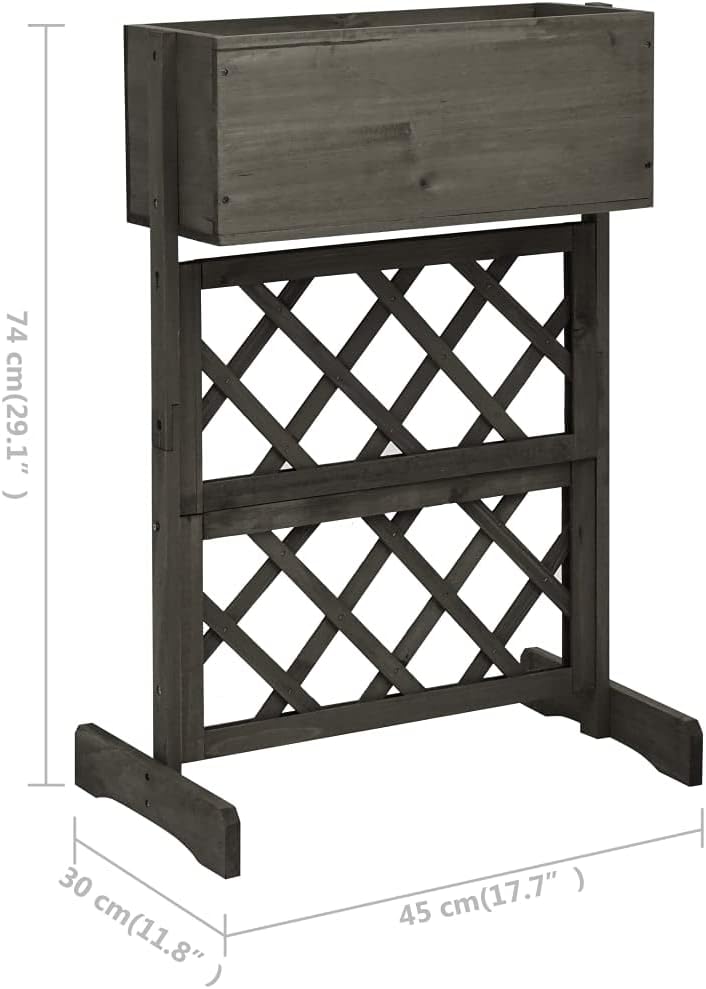 This Garden Trellis Planter mixes practicality with rustic charm, giving you a beautiful option for outdoor spaces like gardens, patios, and balconies. Its spacious design holds various climbing plants and flowers, brightening up your outdoor area while enhancing its natural beauty.Ample Space: The planter’s generous dimensions are spot on for housing tons of plants, helping your green selection thrive nicely. These dimensions support the healthy growth of climbers and flowers, making a lovely display.Sturdy Build: Made from solid firwood, this planter is made to brave the elements. Its natural grainy look not only adds to how it looks but also ensures that it lasts season after season.Outdoor Compatibility: Designed for outdoor use, this planter is built to take on all sorts of weather, making it a must-have in your garden, boosting both beauty and practicality.Aesthetic Appeal: With its rustic vibe, the planter has a timeless look, blending smoothly into any garden or patio. Its gray finish adds a touch of class, letting greenery and flowers shine without stealing the spotlight.Simple Maintenance: Made with weather-resistant materials, this planter is easy to care for—just give it a wipe down with a damp cloth, making it a handy addition to your plant care routine.Color: Gray Shape: RectangularFinish: Waterbase finishIndoor/Outdoor: Outdoor OnlyRoom: Garden and terraceCapacity: Tons of green plants and flowersDimensions: 17.7 x 11.8 x 29.1 in (W x L x H)Weight: 4.52 lbsDrainage: YesDelivery Contains: Planter with trellisAssembly Required: YesRecommended Number of People for Assembly: 1