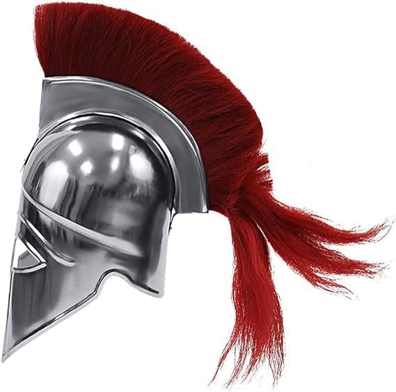 The Greek Corinthian Helmet Knight Medieval Corinthian Helmet With Red Plume is a striking homage to the iconic headgear worn by ancient Greek warriors. Crafted with meticulous attention to detail, this helmet pays tribute to the valor and heritage of the Hellenic civilization. Forged from sturdy materials such as steel, this helmet offers robust protection for the wearer's head while evoking the spirit of ancient battles and heroic feats. Its classic Corinthian design features a rounded skull, cheek guards, and a distinctive nose guard, offering comprehensive coverage without compromising on visibility or comfort. Adding to its allure is a vibrant red plume adorning the crest of the helmet, symbolizing courage and prowess on the battlefield. The plume's bold color contrasts beautifully with the metallic sheen of the helmet, creating a visually striking ensemble that captures the imagination.