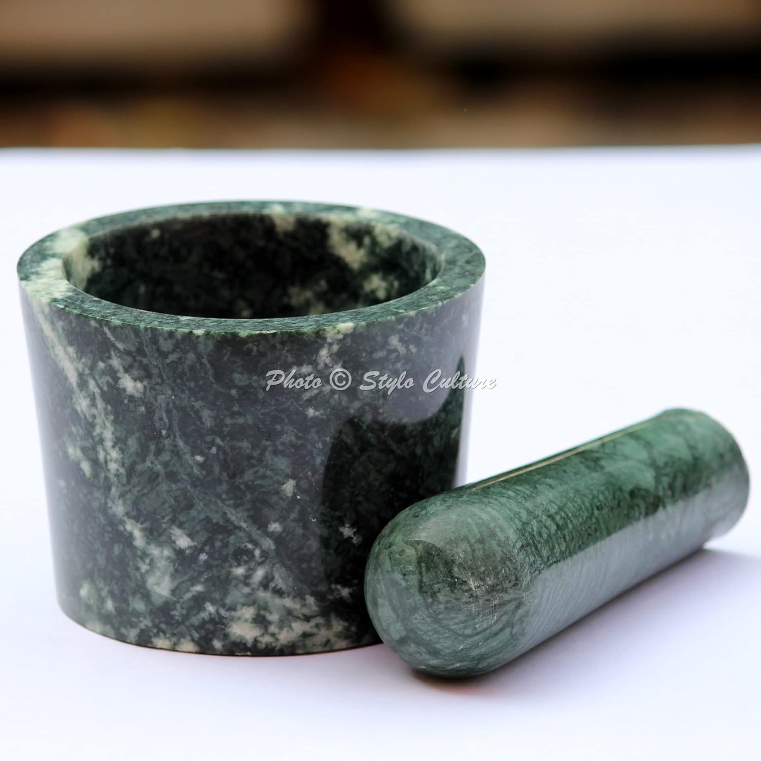 Stylo Culture Mortar and Pestle Set is the perfect tool to grind items into a fine paste or powder. The mortar bowl and pestle work together to grind and break down ingredients quickly to help speed up food preparation with minimum effort. Quickly grind fresh ingredients, like cloves of garlic, herbs and spices, peppercorns or cinnamon, nuts, grains, and seeds, into a fine paste or powder. Make aromatic dry rubs, curry pastes, pestos, nut butters, spreads, and so much more. Even use it as a pill crusher to pulverize harder-to-swallow pills! So easy to use. Simply place an item into the mortar bowl. Hold the pestle by the handle and, using a firm pressure, make a circular stirring-like motion to grind your item into a paste or powder. Harder items, like peppercorns, may need the surface cracked before they can be ground. Firmly, but gently, tap the item with the pestle, then grind into the desired consistency. Pestle and mortar are both made from fine-quality stone to complement kitchen countertops and any home decor. Stylo Culture Mortar & Pestle sets are a robust and durable mortar and pestles that gives foodies, budding and professional chefs & culinary students a reliable kitchen tool that helps create mouth watering delicious meals. Our Mortar and Pestle helps release the oils & mouth watering flavors in freshly ground spices making a big difference in the taste of the food.