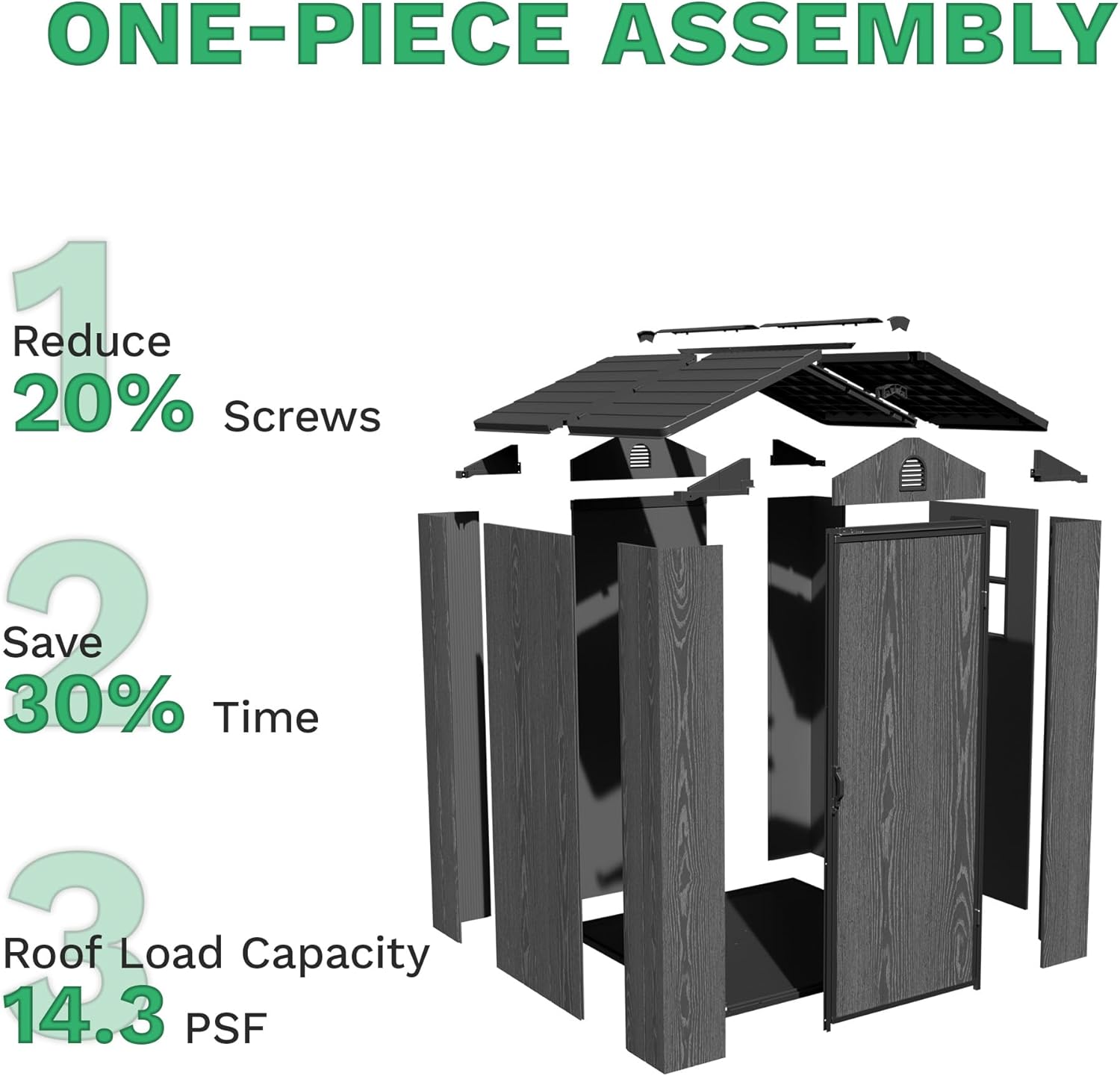 Ultra-Durable & Weatherproof Resin Shed – Secure 4x4FT Storage with Lockable Door Feature: Greesum 4x4FT Plastic Storage Shed with Floor, Resin Outdoor Storaged Sheds with Lockable Door, All Weather Durable Tool Shed with Window and Vent, for Garden, Backyard, Patio, Dark Gray Specification: Material: Plastic. Package Dimensions:70.47"(L) x 30.31"(W) x 9.84"(H) Package Weight:101.85 lbs Package includes: A tool kit A Plastic Outdoor Storage Shed A manual of installation and usage Notice: There may be some differences between photos and items in term of color because the influence of lighting during the shooting or the settings of the computers’ display screen.