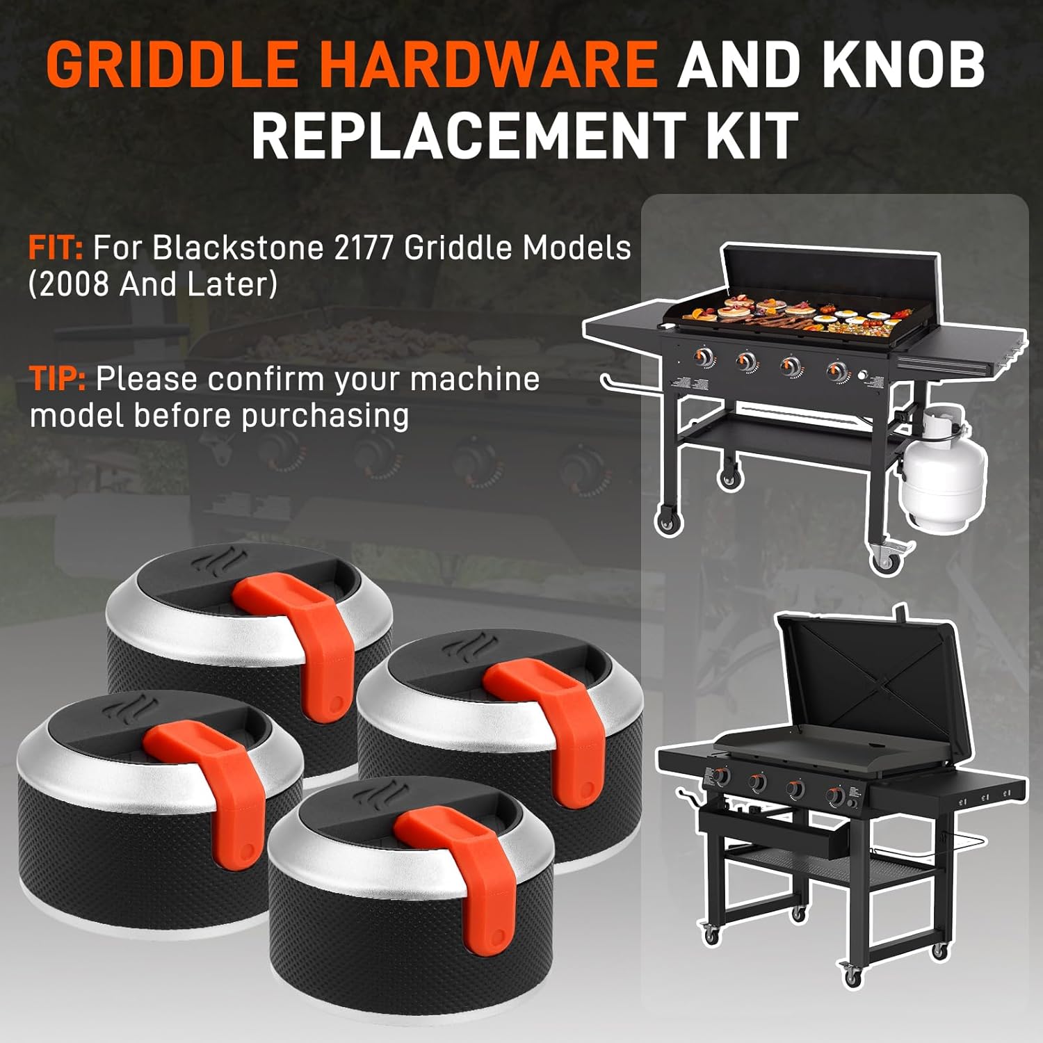 YIBEICO Griddle Control Knob Replacement Kit for Blackstone 2177 36 Inch Gas Griddle, 4 Burner Orange Knobs And Hardware Set