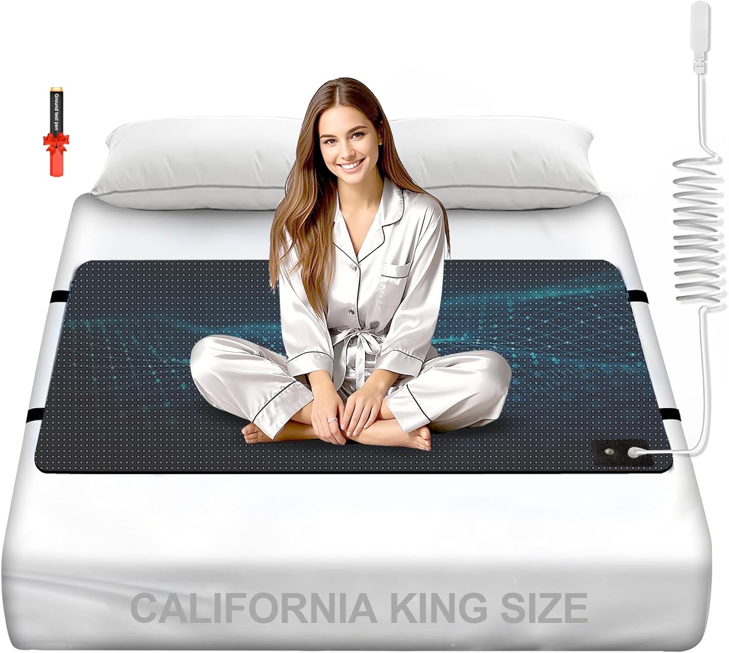 Grounding Mat for Bed, Carbon Fibre + PU Mattress for Improved Sleep and Pain Relief, Grounding Mat with Grounded Cord, Test Pen (Full - 27"x 54")