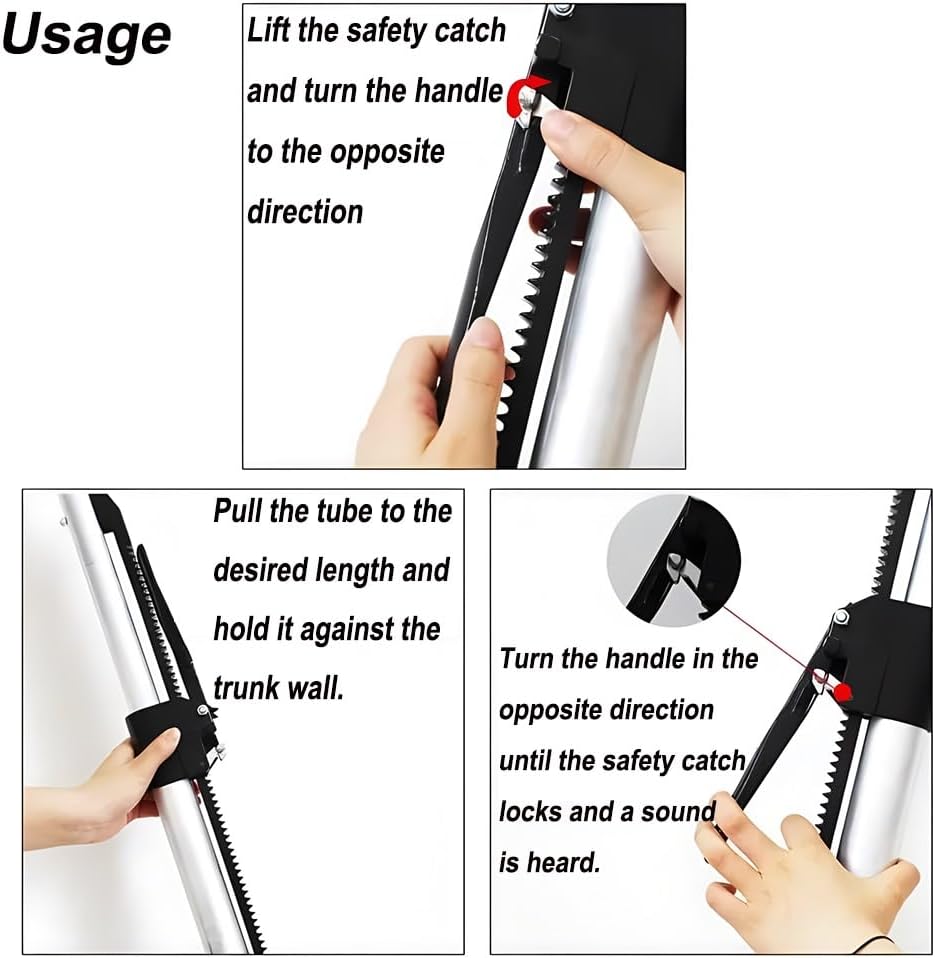 Ratchet cargo box tie bar is an indispensable help in long-distance transportation, the internal aluminum alloy spring device, good load-bearing capacity, the length can be adjusted to adapt to different models.Product Description1. The length of the truck mounting bars can be telescoped and adjusted to fit the height and width of the interior of the truck.2. 1.5mm thick steel wall, managing heavy loads without deformation.3. the end of the truck bed bar separator is equipped with a spring, steel, tightly, will not come loose. 2. the extended end bracket, length of the bed bar, will not come loose.4. up the safety catch, turn the handle to the opposite direction, pull the steel to the desired length, press it against the wall of the wagon, turn the handle to the opposite direction until the safety catch locks and the sound is heard.5. Our ratchet cargo bar provides exceptional versatility with a large adjustable range, making it compatible with most models within this range. Whether it's for your trucks, trailers, or semi-trailers, this cargo bar is a great fit.Packaging2x Adjustable Steel Load Locking Lever