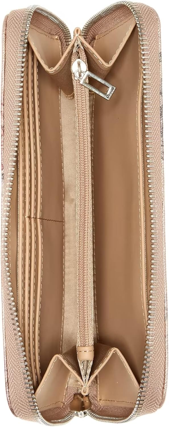 Made for your essentials, this medium wallet features a floral print with an allover embossed logo design, gold-tone hardware and zip-around closure.