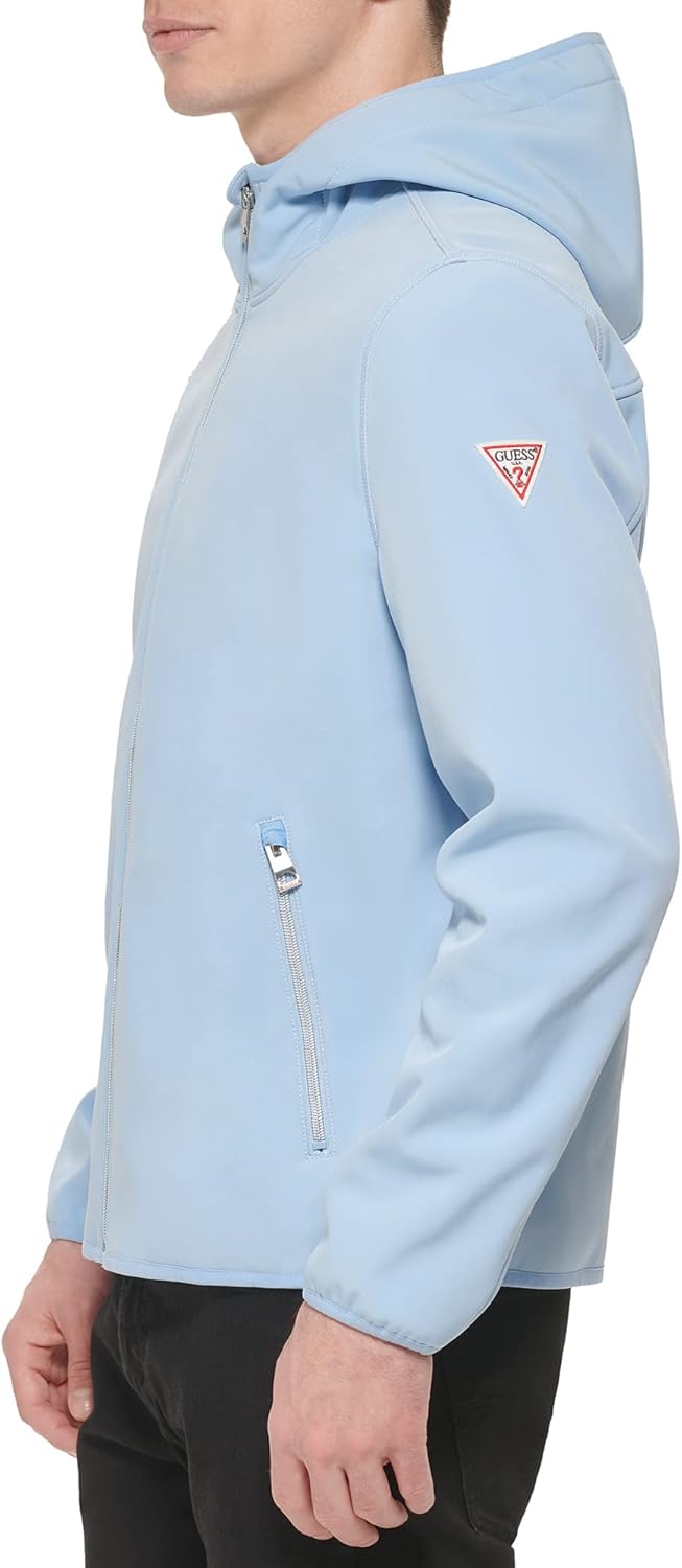 This GUESS Men's Outerwear Jacket is a Everyday Softshell Hand entry pockets Hood Long sleeve