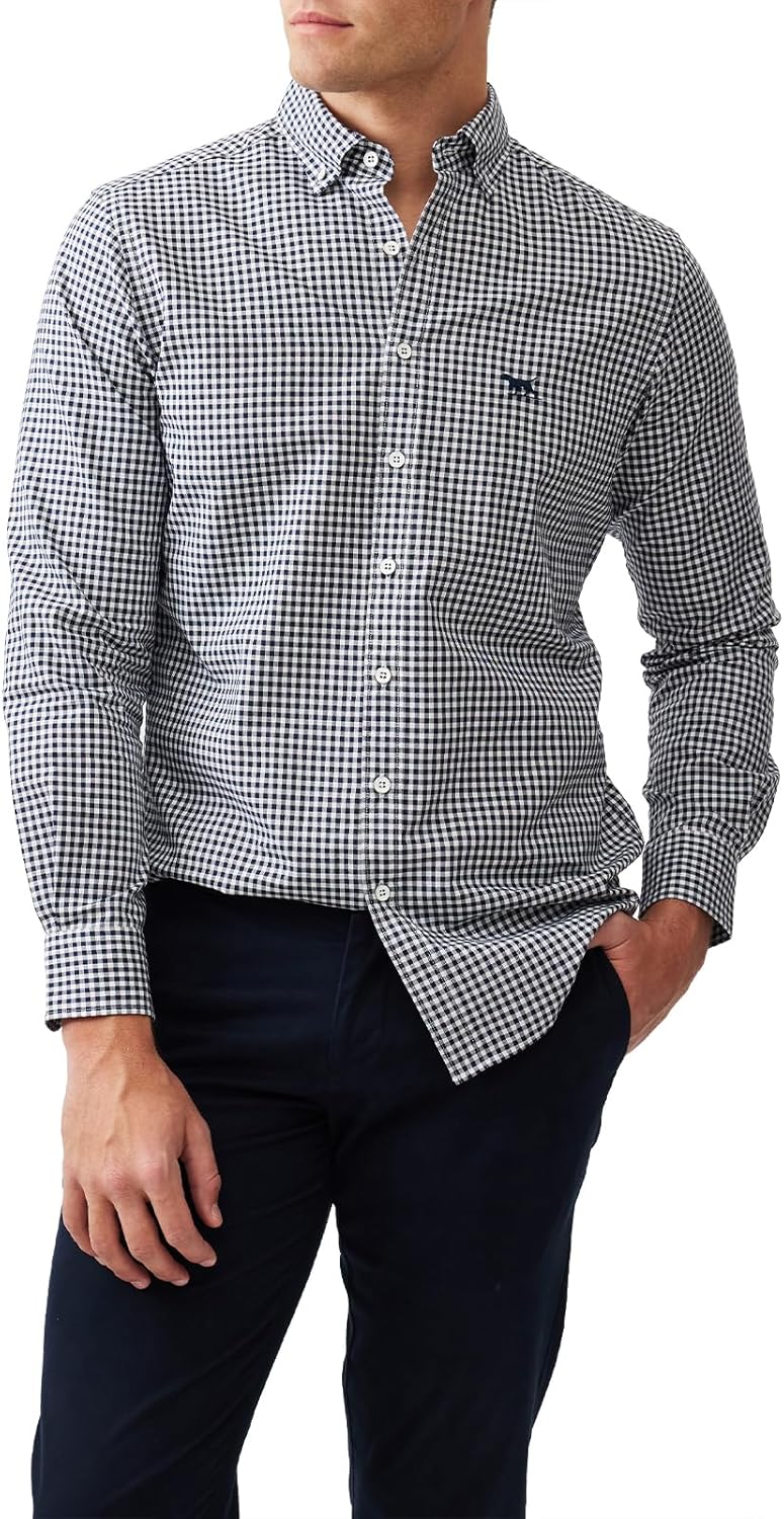This long-sleeve shirt features a classic and adaptable navy gingham check. Crafted in soft long-staple Californian cotton yarn and woven in Italy with a breathable panama weave.