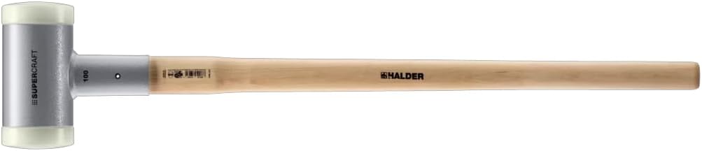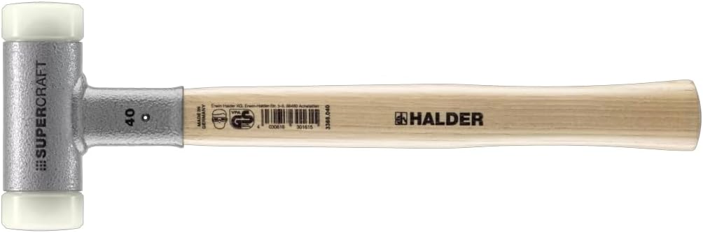 The Halder Supercraft is the finest dead blow, non-rebounding hammer on the market. It features a steel housing containing steel shot to produce the non-rebounding action. This allows the user to hit materials very hard but use much less effort to do so thus making it easier on the arms, shoulders, back and joints. The Supercraft dead blow hammer features two replaceable hard nylon faces giving you double the hitting area. These faces are made from extruded nylon material and will not crack like molded, screw in face inserts. The thick durable inserts are tough enough to hit most surfaces, including brick, concrete, rock, steel, wood, and plastic making the Supercraft an excellent alternative to the traditional steel hammer. The nylon inserts also provide added safety when hitting metal as it will prevent flying shrapnel that can occur when hitting metal on metal as with a traditional steel hammer. It will also reduce the noise level dramatically. The Supercraft will still allow you to hit materials extremely hard without damaging the surface you are hitting making ideal for manufacturers, machinists, landscapers, woodworkers, and hobbyists.
