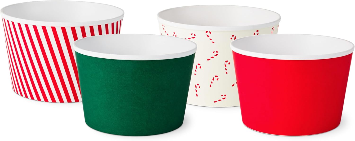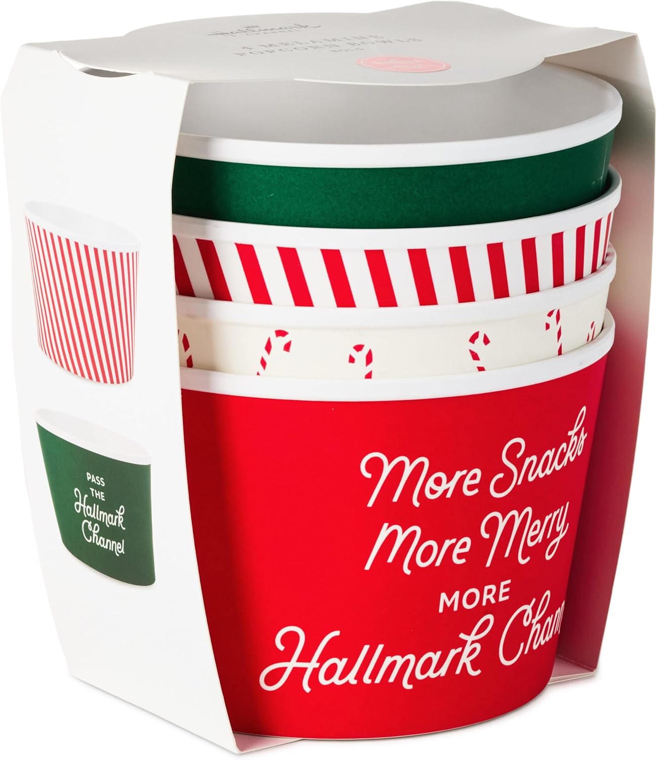 Make your Christmas movie-watching party really pop with this set of four popcorn bowls. Cute melamine bowls feature 4 festive designs: Candy canes, red and white stripes, and solid red and green with unique and fun messages about Hallmark Channel. You can pick your favorite, pile it full of popcorn and snacks, then go find your spot on the sofa and snuggle in. Each bowl holds a generous 60 oz. so you won't need to hit pause during the good parts.