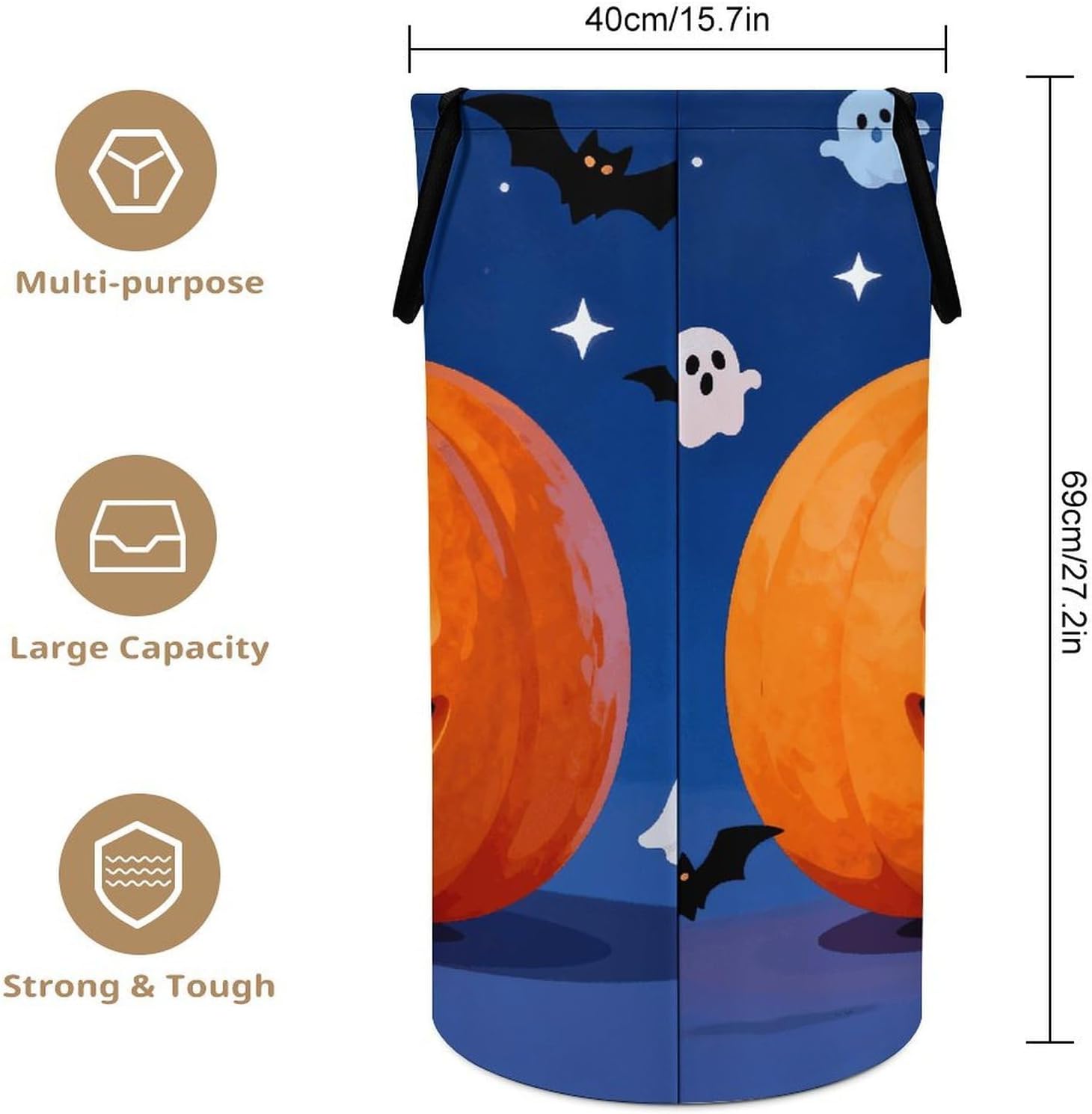 The pattern of the Halloween Jack Lantern hamper is printed with exquisite patterns, which makes the product more attractive.Chic design allows it to be used in the living room to hold throw blanket, pillows, and reading materials, as well as in the bathroom for towels, or as a laundry hamper.The laundry hamper adopted collapsible design, equipped with handles. It is lightweight and portable for using, storing, and moving conveniently.Halloween Jack Lantern Clothes hamper is suitable to store dirty clothes washing, place in the room to store toys, and other household goods, keep the house clean and tidy. Perfect laundry hamper for home, office, closet organizer, bedroom, bathroom, college dorm, etc.Gets out of your way when you need it to. This storage basket or laundry hamper is a good gift, which not only meets everyday storage needs but also carries deep care and love, a perfect way to turn thoughtfulness into warmth.