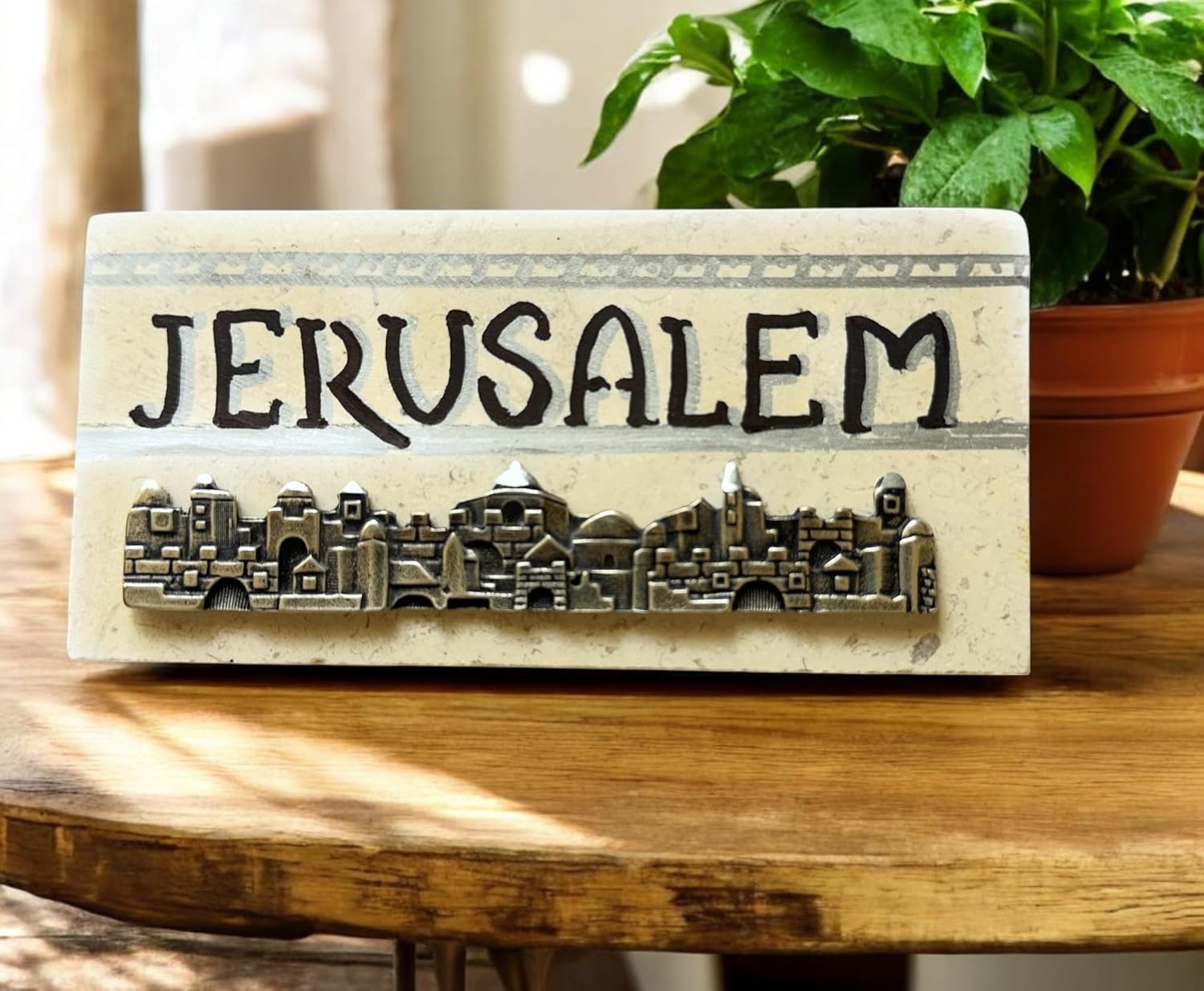 Connect with the holy land by bringing a piece of Jerusalem dolomite stone in addition to Jerusalem old city golden silhouette into your home and feel more connected with your faith than ever before. For many people, Jerusalem plays a significant part in their religious beliefs. It’s a holy land where three major religions come together: Judaism, Islam, and Christianity. That’s why we created this all-natural dolomite stone set featuring one jerusalem stone that has been cut straight from Jerusalem quarry itself. Beautiful and completely authentic these stones carry the memories of ancient Jerusalem, so you can make them a significant part of your religious or cultural lifestyle. Product Details:Authentic Jerusalem Stone (1) All-Natural Cut and polish Personal Religious or Traditional Keepsakes Premium Dolomite LimeStone (Hard) Thoughtful craft and Gift Idea Get these beautiful and authentic dolomite stones straight from Jerusalem and embrace your faith or cultural history with natural decor direct from the holy land itself.
