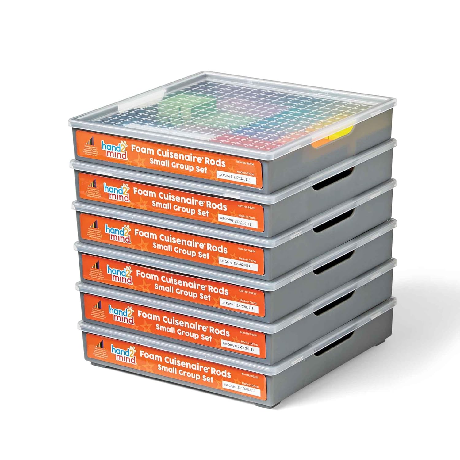 These Hands-On Cuisenaire Rods help students relate abstract ideas about numbers and shapes to something they can see and touch! This teacher-favorite manipulative provides endless opportunities to introduce, investigate, and reinforce key math topics such as addition, subtraction, geometry, measurements, multiplication, and division. Cuisenaire Rods come in 10 colors and lengths: Orange (10 cm), Blue (9 cm), Brown (8 cm), Black (7 cm), Dark Green (6 cm), Yellow (5 cm), Purple (4 cm), Green (3 cm), Red (2 cm), and White (1 cm). These Cuisenaire Rods come with 6 storage trays for easy, stackable storage. Each tray’s lid doubles as a workplace grid! This set includes 6 Sets of 74 Foam Cuisenaire Rods: 4 Orange, 4 Blue, 4 Brown, 4 Black, 4 Dark Green, 4 Yellow, 6 Purple, 10 Green, 12 Red, 22 White, and 6 Storage Trays. For over 50 years, hand2mind has encouraged hands-on learning and discovery, driving deeper understanding and helping children unlock their full potential. Hand2mind specializes in math manipulatives designed to help students learn by doing. Particularly with fractions, our rainbow fraction tiles, rainbow fraction circles and rainbow fraction tower cubes make learning fractions as easy as learning the colors of the rainbow. From early math to middle school math, hand2mind has you covered with products designed to enhance learning in the classroom and the world around us. Through hands-on exploration and discovery, we strive to find new ways to encourage students in math practice, literacy activities, STEM education and more!