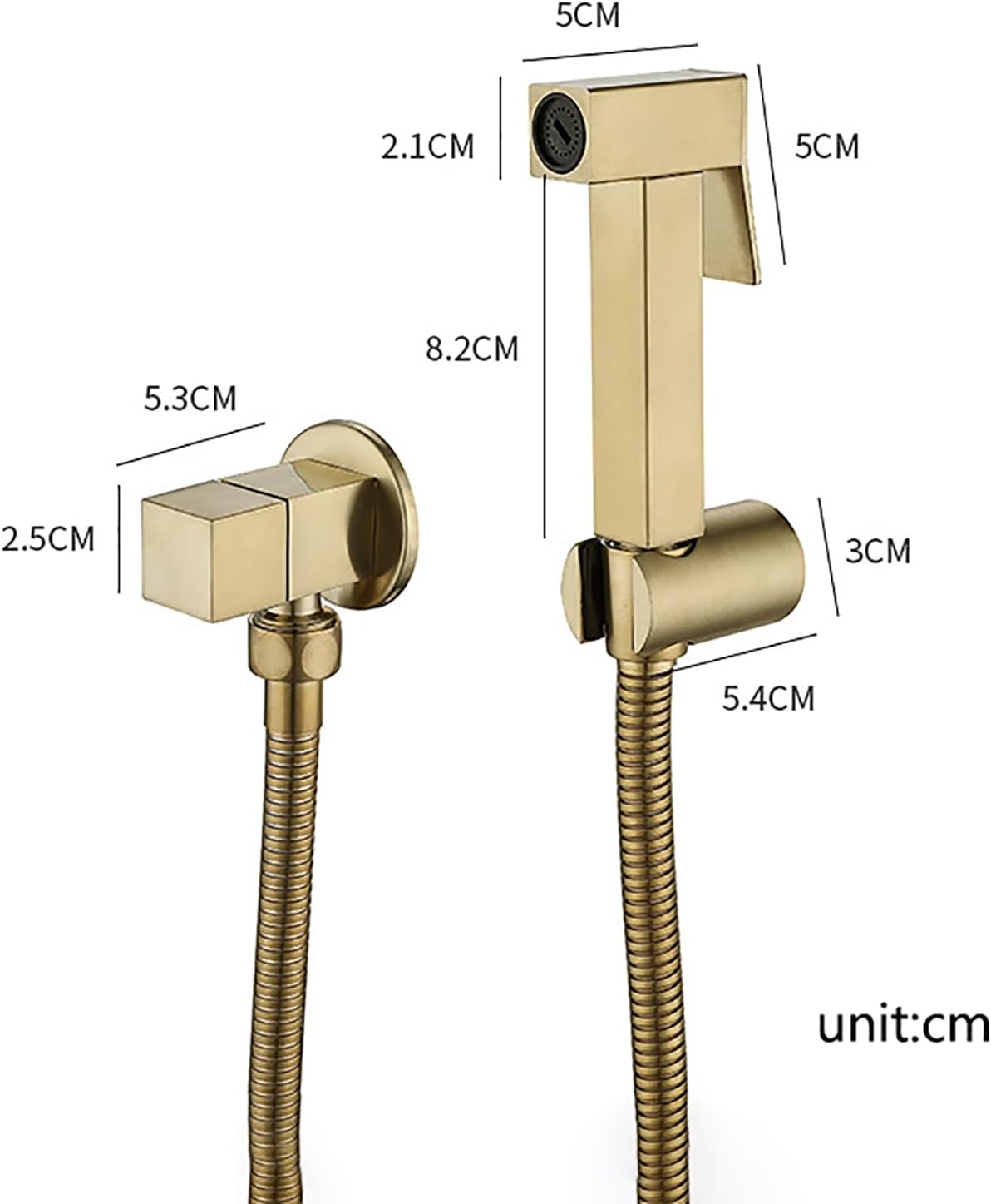 SprayersThe perfect solution for everyday personal hygiene contributes to a healthy and happy lifestyle.Specification:Product Name: Bidet faucetStyle: ContemporaryColor: Black, Brushed GoldInstallation Type: Wall mountedHot & Cold Water No single coldNumber of Handles: Single handleShower Hose: 59 Inch (150 cm)Connection: G1/2"● Material:Angle Valve Material: BrassBidet Sprayer Material: Stainless SteelShower Hose Material: Stainless Steel● Applicable Places:Villa Bathroom, Hotel Bathroom, Family Bathroom, Toilet, Kitchen, Garden and so onInstallation Tips: Rinse the debris in the pre-embedded water pipe before installation to avoid clogging the faucet and internal pipingWe hope you enjoy life!