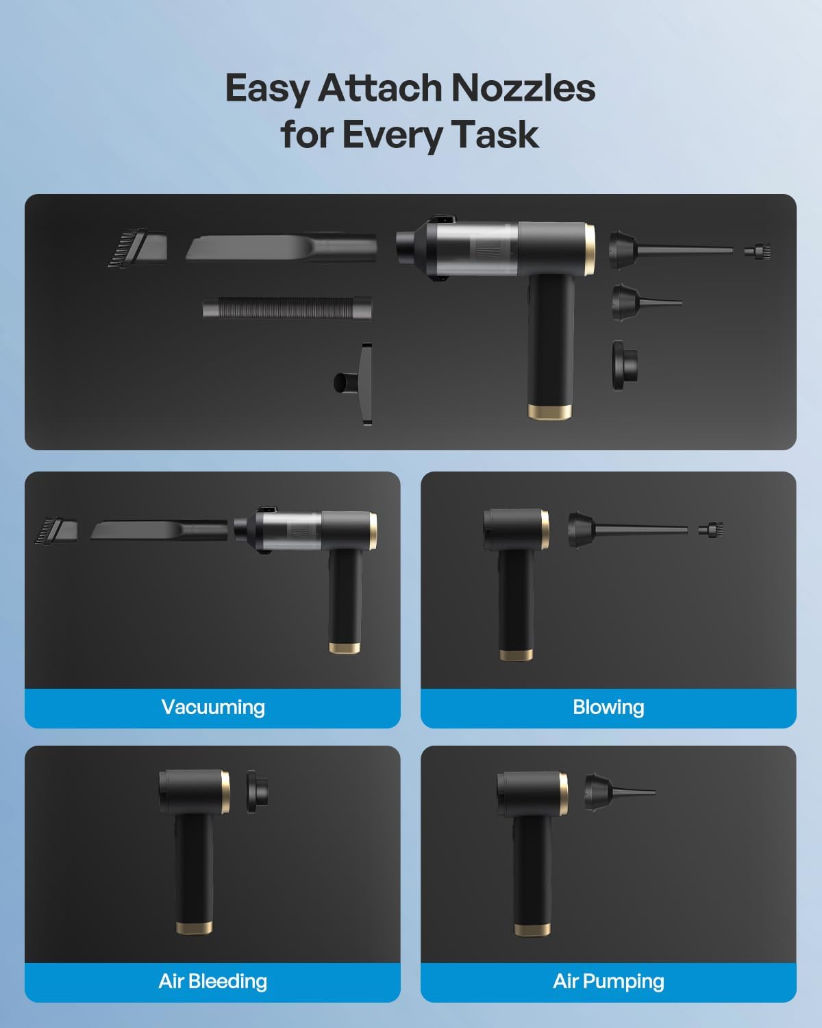 | Other Special Features of the Product | Battery Powered, Max 40 Mins Runtime, One-Touch Dust Disposal & Washable Filter, Portable, Vacuuming, Blowing, Inflating, Pumping 4-in-1 |