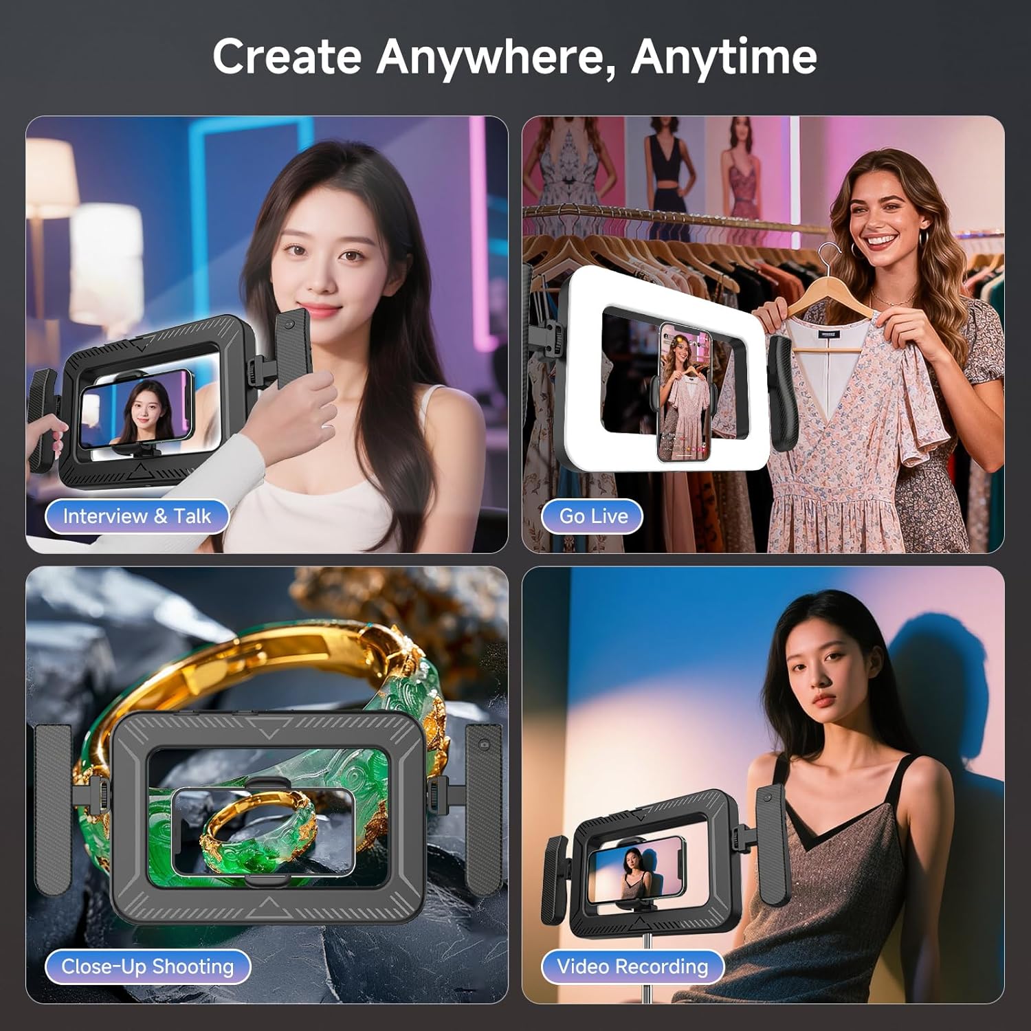 | Flash Modes Description | Constant illumination, adjustable brightness, adjustable color temperature |