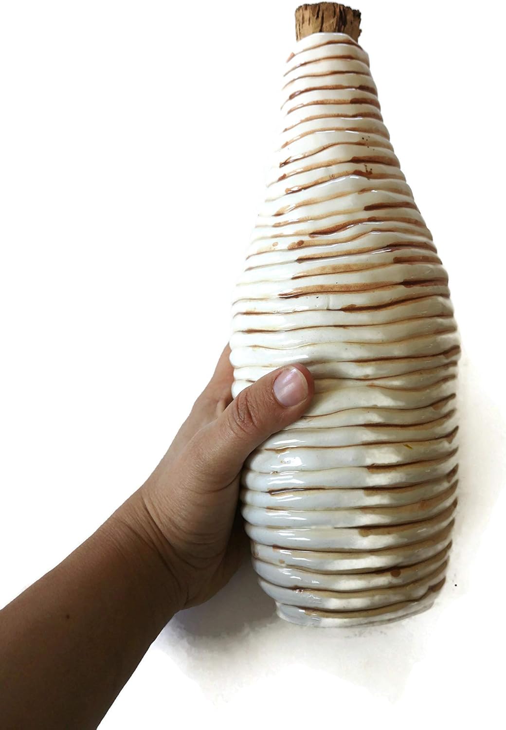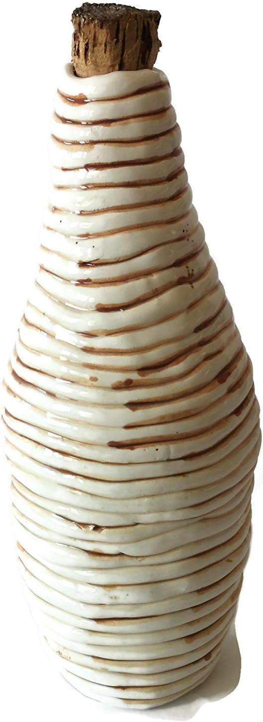 This charming ceramic bottle with a cork stopper is very versatile. It would look lovely as a decoration in a country home, modern space, or contemporary area. An eye-catching large bottle vase decorative, with interesting irregularities and textures. This bottle is also functional and can hold any liquids you like. A perfect gift for Christmas or 9th-anniversary.
