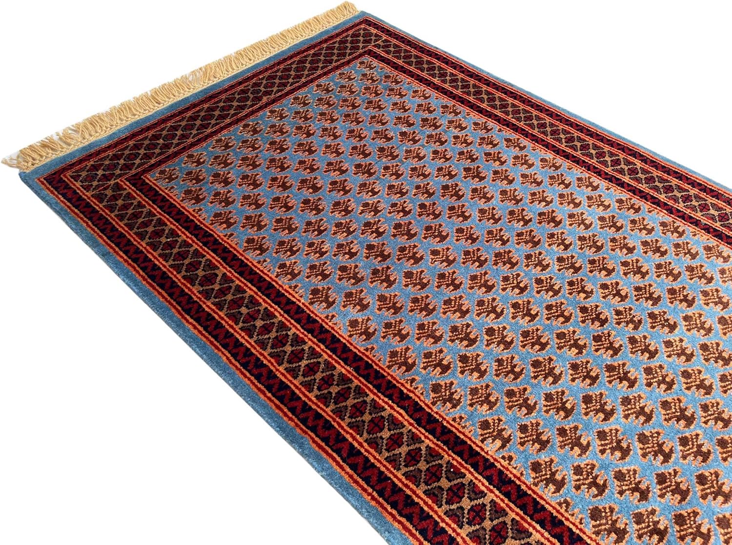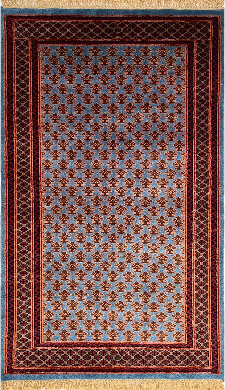 100% Handmade, Hand Knotted Technique made with high quality Wool Rug, Traditional Lichi Design, Bluish Gray Ground Color, Small size 3x5 ft (90x150cm) made by rural artisans.