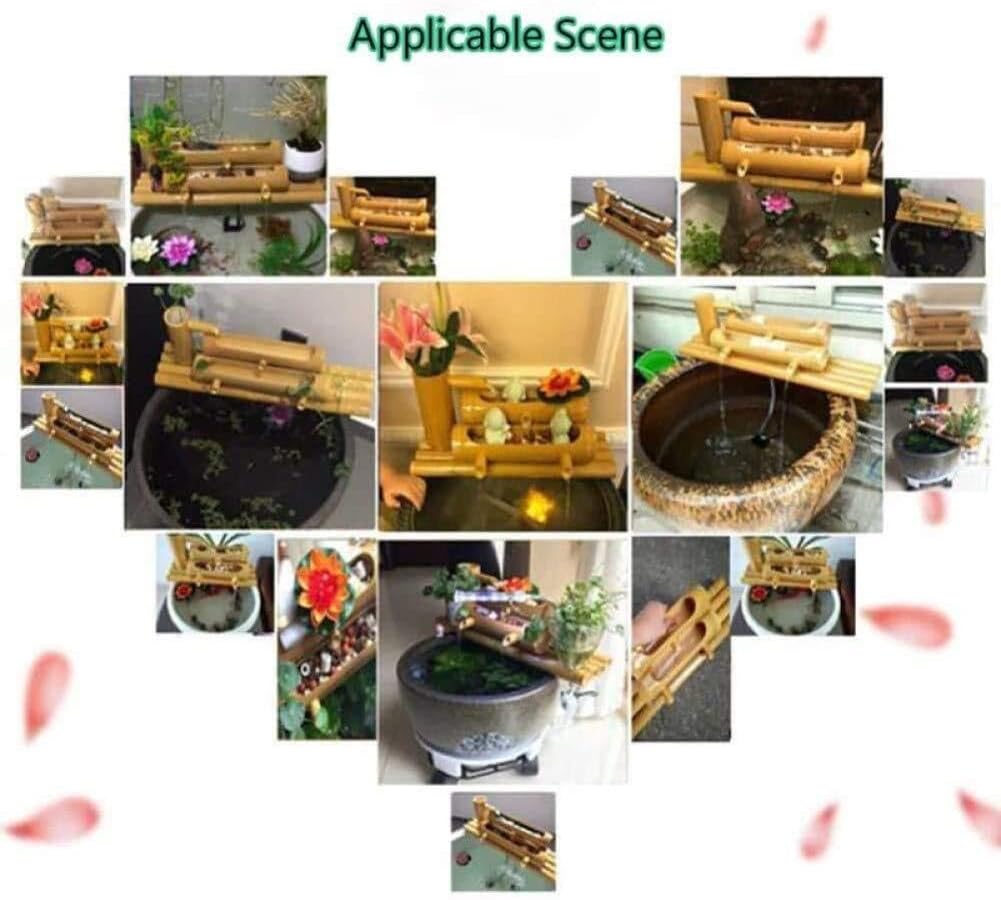 Create a serene Zen atmosphere in your home or garden with this Handmade Bamboo Water Fountain. Imported directly from Asia, this beautifully crafted fountain features real bamboo, which symbolizes longevity, friendship, and diligence in traditional Asian cultures. The peaceful flow of water not only enhances your space but also brings positive energy through the principles of Feng Shui.This bamboo fountain includes a water scoop and bamboo structure, allowing you to add your own water pump for an easy and relaxing setup. Perfect for both indoor and outdoor spaces, the fountain can be placed in your garden to promote prosperity or inside your home to promote tranquility and relaxation. The unique ese-style scaring deer statue adds a delightful touch to the design, making it both a decorative piece and a soothing water feature.Designed to be both a functional water feature and an artistic statement, this bamboo fountain is ideal for creating a Zen garden in your living room, office, or outdoor space. The gentle sound of flowing water can help you unwind and clear your mind, turning any environment into a peaceful retreat.Product Specifications:Fountain Dimensions: 65 * 15 * 45 cm (L * D * H)Water Scoop Length: 45 cmMaterial: Natural BambooPackage Includes:1 x Bamboo Fountain1 x Water Scoop(Pump not included)Easy Installation: Connect the included tube to the pump, add water, and plug in for instant relaxation.Whether you're gifting it to a loved one or adding it to your own space, this bamboo fountain is sure to become a standout piece, bringing peace and beauty wherever it's placed.Customer Support: We offer excellent after-sale service. If your product is damaged during transportation, simply provide pictures, and we'll offer a replacement or full refund. Feel free to contact us with any questions; we're here to help!