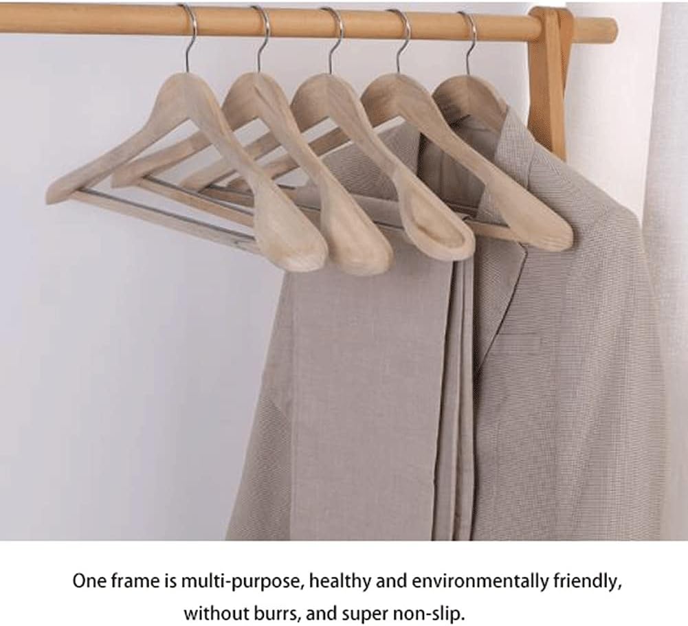 Design: Non-slip technology on the shoulders and pant bar; grips and holds delicate clothing securely. Name: Hanger Dimensions: 44.5 cm x 22 cm Material: Wood Hang all your favorite clothes with these coat hangers to give your closet an unified, happy look and enjoy you dressing moment.