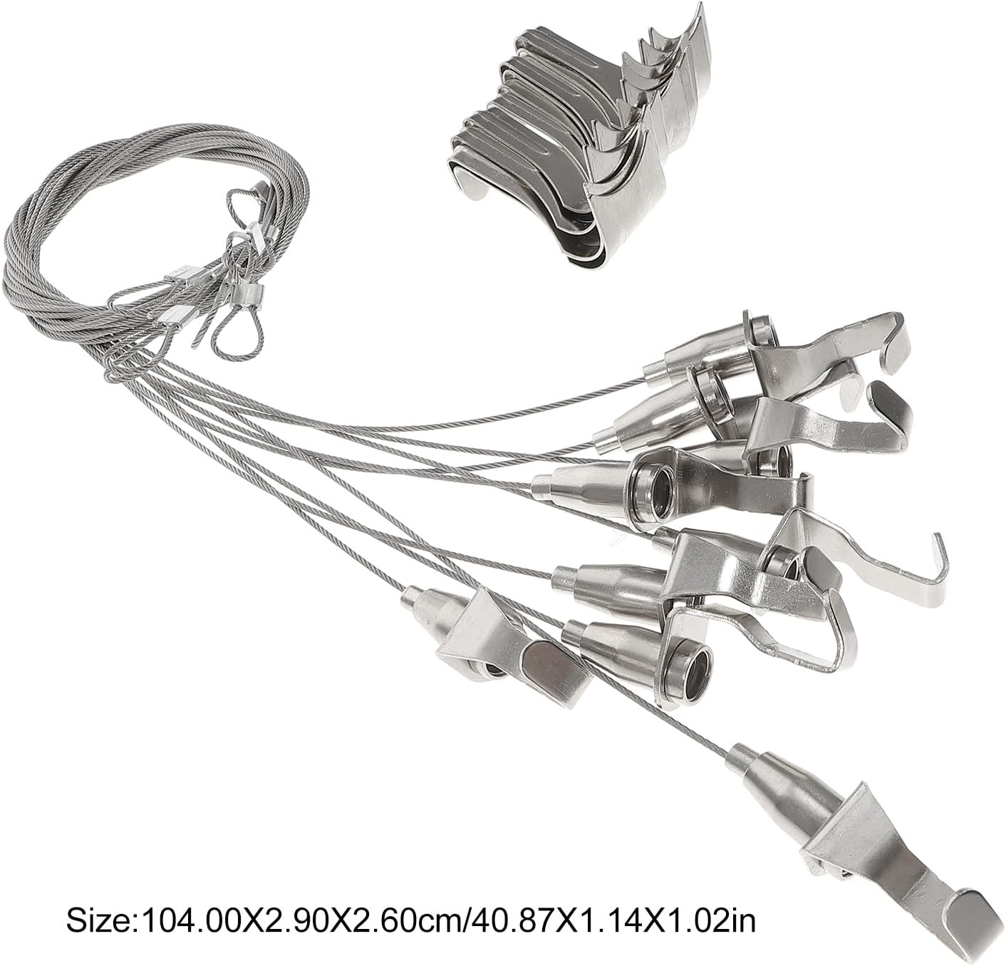 Description looking for a professional and picture hanging wire, then your research is over here. That's because our product can meet your need. Adopted of premium material, it is practical and for time use. It is not easy to get deformed and bring you much convenience.Features-Color:Silver-Material:Stainless steel-Size:104.00X2.90X2.60cm/40.87X1.14X1.02inMaximum load capacity: 66lb/30kg- Heavy picture railing hook: maximum load capacity can reach to 66lb(30kg).- Adjustable cable with ends, track hooks fit all picture rail moldings.- Let the viewer on the individual design of the artwork with an easy installation system.- Great display kit for framing works, exhibitions, galleries, photography, canvases, artwork.- It is in stable characteristics, high performance and it is in great reliability, simple, easy to install.10 x hooks10 x steel wires10 x adjustable hooksItem specifics: supplies: WoodworkingOrigin: Mainland ChinaCertification: NONE