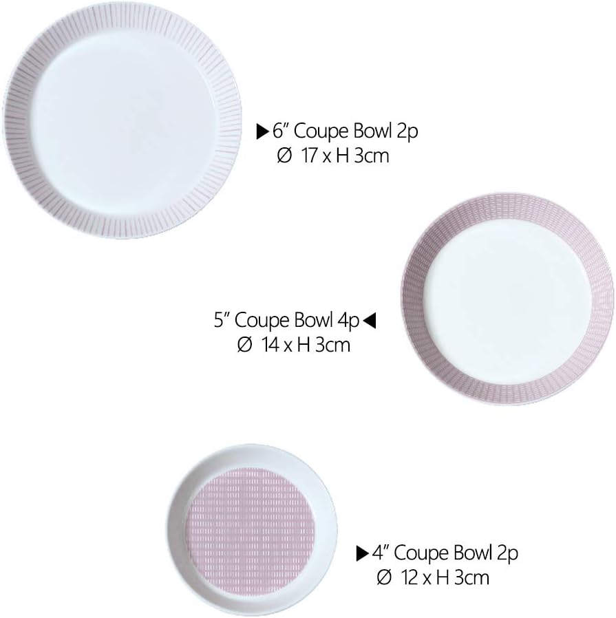 | Included Components | Small Bowl (4pc), Cereal/Soup Bowl (4pc), 8" Plate (1p), 7" Plate (2pc), 6" Coupe Bowl (2pc), 5" Coupe Bowl (4pc), 4" Coupe Bowl (2pc), and 9" Pasta Bowl (2pc) |