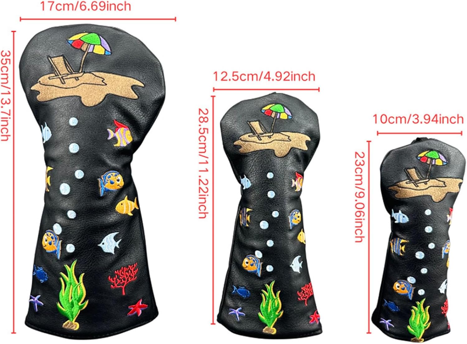 Set Include: 3Pcs/Set Golf Club Head Cover Condition: New with tags Material: 50% PU Leather, 50% Polyester Tag No.---|---Recommended Size---|-------Length------|-------Width--- ---S------|-----------S----------|-----9.1''/23cm----|----3.9''/10cm- ---M------|-----------M----------|---11.2''/28.5cm---|---4.9''/12.5cm ---L------|-----------L----------|----13.8''/35cm----|----6.7''/17cm-
