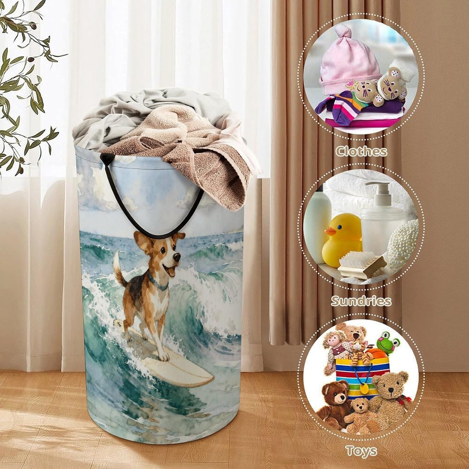 The pattern of the Happy Doggies hamper is printed with exquisite patterns, which makes the product more attractive.Chic design allows it to be used in the living room to hold throw blanket, pillows, and reading materials, as well as in the bathroom for towels, or as a laundry hamper.The laundry hamper adopted collapsible design, equipped with handles. It is lightweight and portable for using, storing, and moving conveniently.Happy Doggies Clothes hamper is suitable to store dirty clothes washing, place in the room to store toys, and other household goods, keep the house clean and tidy. Perfect laundry hamper for home, office, closet organizer, bedroom, bathroom, college dorm, etc.Gets out of your way when you need it to. This storage basket or laundry hamper is a good gift, which not only meets everyday storage needs but also carries deep care and love, a perfect way to turn thoughtfulness into warmth.