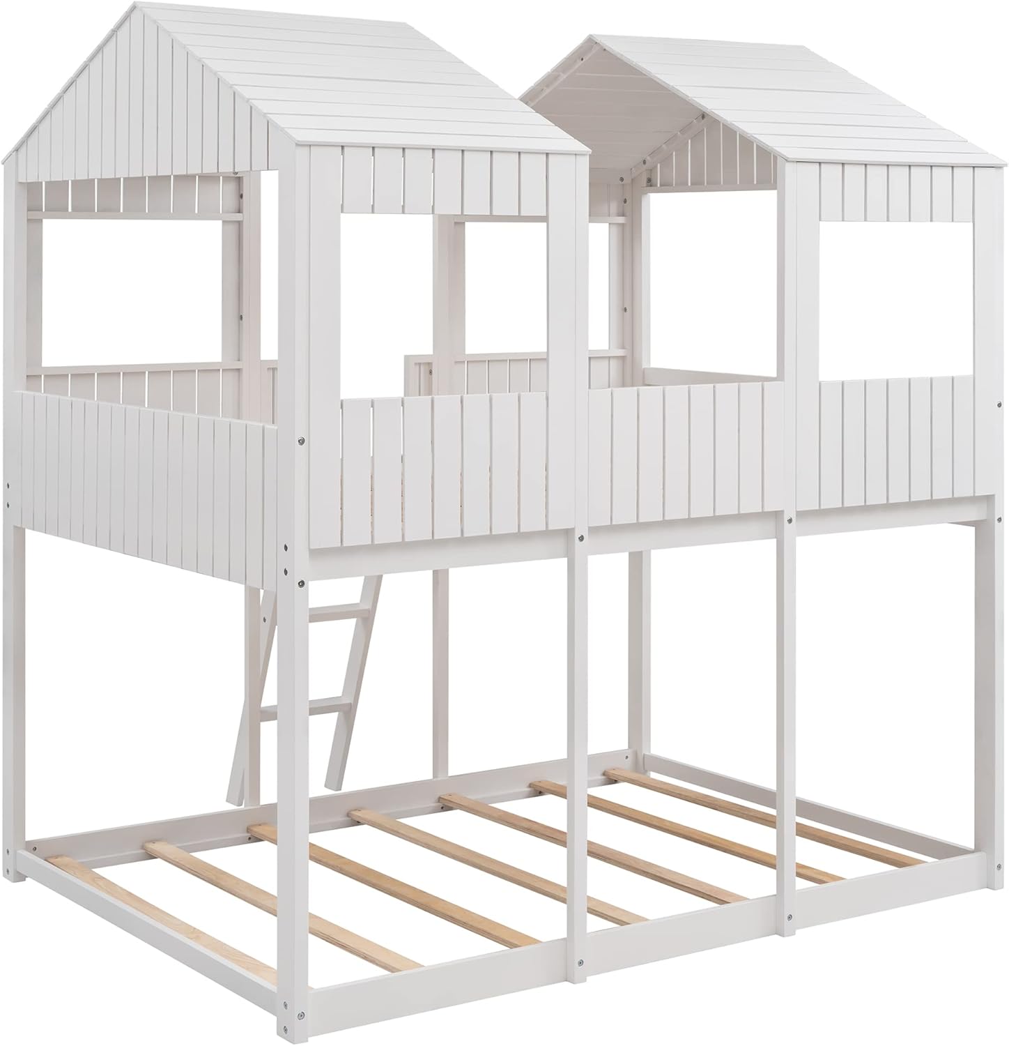 Take your bedroom to the next level with this full over full bunk bed that not only saves space, but creates an exciting atmosphere for you. Featuring a pitched roof and playhouse-inspired wall with window, this bunk bed doubles as a semi-enclosed play place perfect for you to study, watch TV or explore their imaginations. With guardrails, a ladder and a sturdy pine frame, this bunk bed offers a safe space for your family to get a good night's sleep. Overall Product Dimension:78.7"L x 56.2"W x 85.5"H Overall Product Weight:226.72LBS Weight Capacity:Upper bed: 400LBS Bottom bed: 400LBS Product Type:Bunk Bed Size:Full-Over-Full Color:White/Gray/Antique Gray Material:Plywood+MDF+Pinewood Country of Origin:Vietnam