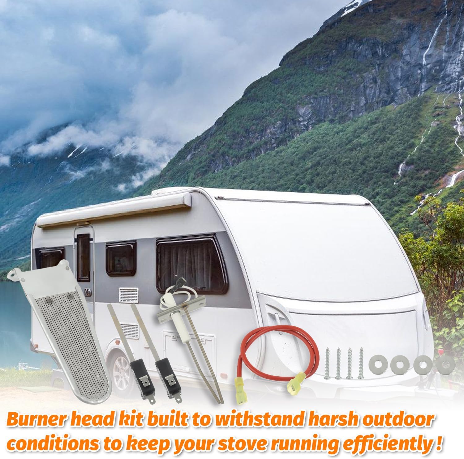 HUAREW Camper Furnace Burner Head, A Must Have for Rebuilding Your RV Camper Furnace that Cannot Generate Heat! Premium Performance 1. Easy Fix RV burner head obstruction, rusting, breaking, and burnout can be readily resolved with the furnace electrode component kit, extends the service life of your furnace 2. Efficient Operation Improve heating unit efficiency and reduce propane use by replacing with the new camper burner head, ensures your furnace operates efficiently even in harsh outdoor conditions 3. Stable and Reliable 30268 RV burner head adopting enhanced safety function design to stabilize flames and ensure safe and smooth operation of the furnace 4. Specially Designed 36680 sail switch designed for rv and campers heater fault use. When your would run normally, if you hear the igniter begin to fire, then the would light, then immediately go out.Maybe you can consider the problem of the sail switch 5. Important Components 34570RV furnace ignitor electrode are essential components for maintaining the functionality of your RV stove, an important part of solving the problem of the stove not heating normally or not starting Package includes 1 X 30268 RV burner head 1 X 34570 RV furnace igniter 2 X 36680 Sail switch 4 X Screws 4 X Washers
