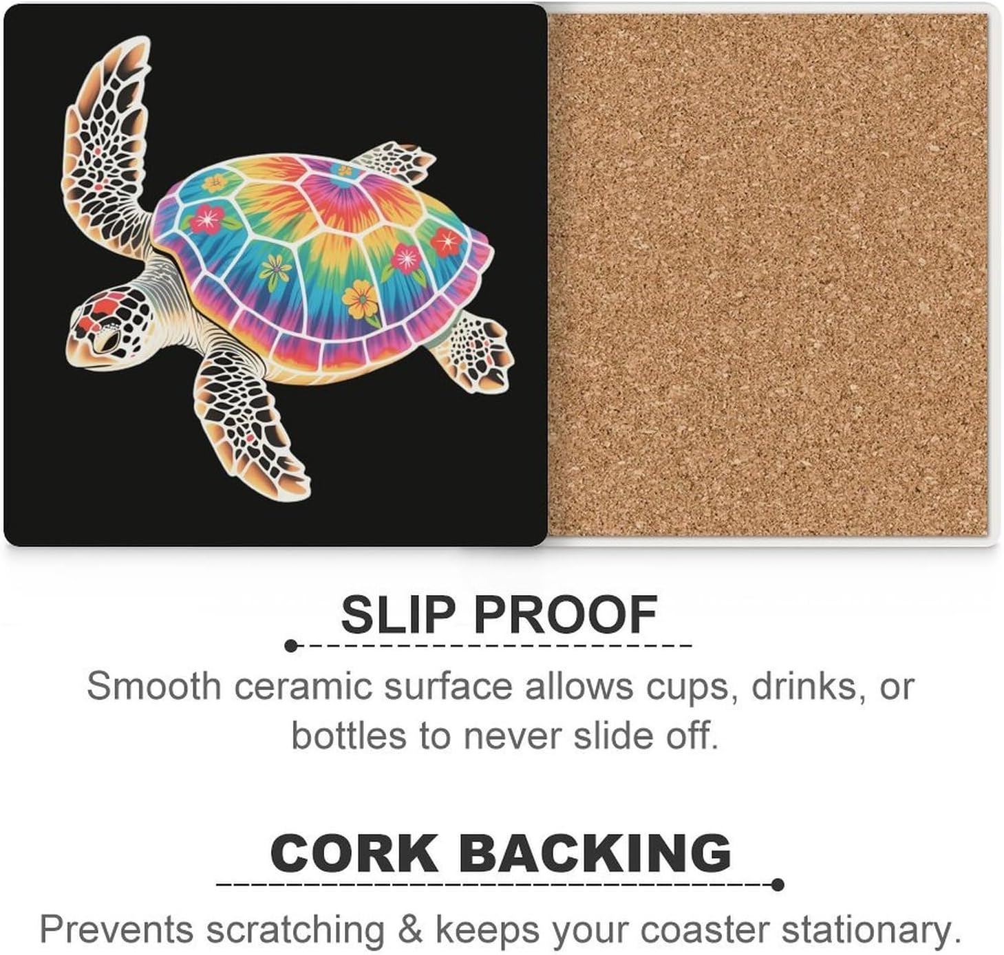 Cute Printed Absorbent Ceramic Coaster for Drinks Funny Coasters with Cork Base Suitable for Kinds of Mugs, Cups, Prevent Tabletop Wear And Scratches, and is Easy to Clean