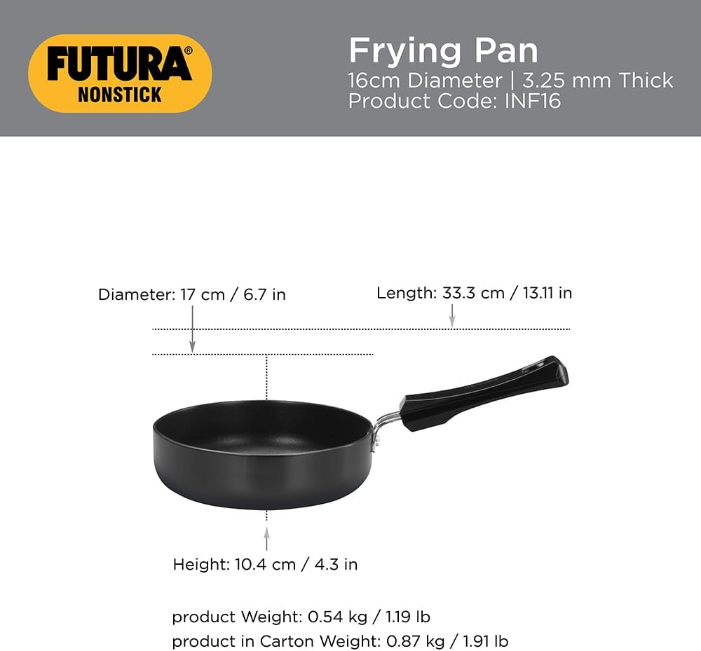 Hawkins Futura Frying Pan is crafted with precision. This frying pan features a PFOA Free Non-stick coating seamlessly bonded to tough Hard Anodised Aluminium, ensuring durability and superior cooking performance. Renowned for its heavy gauge construction and impeccable balance, the Futura Frying Pan makes cooking effortless and results consistently delicious. Whether you prefer cooking with minimal oil or no butter at all, this frying pan delivers outstanding performance without compromising on taste. Experience comfort and convenience like never before with the stay-cool plastic handle, ensuring a secure grip and comfortable maneuverability. Versatility meets compatibility with this Frying Pan, suitable for use on a wide range of stovetops including gas, induction, kerosene, electric, ceramic, and halogen. From traditional delights like Akuri and Alu Tikki to international favorites like French Toast and Pancakes, this frying pan caters to a myriad of culinary creations.