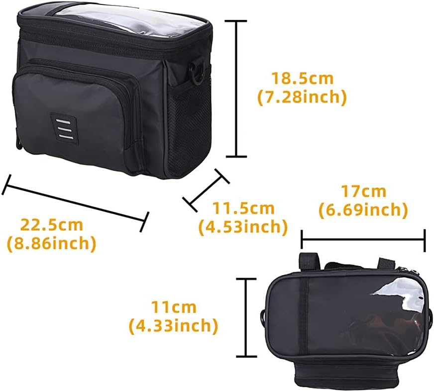 Features:Made of polyester fabric, wear-resistant and .The insulated main pocket keeps your drinks cool or food fresh.Transparent touch screen PVC bag for storing your map or mobile phone.Two mesh side pockets make it easy to carry small items with you.Quick-release installation strap, easy to install on the handlebar.specification:Material: polyesterSize: approx. 22.5 * 11.5 * 18.5Cm/8.86 * 4.53 * 7.28 Weight: about 375g / 13.2ozpacking list:1 * Bicycle basketnotes:1. Manual measurement, please allow 1~3mm error, thank you.2. Due to the difference of different monitors, the picture may not reflect the actual color of the project. We that the is the same as the picture.Suitable for a beautiful storage bag for road bikes.