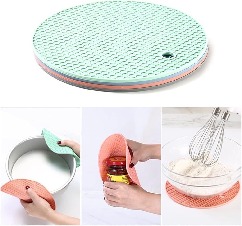 Describe:1. Made of silicone, non-slip, , flexible and not easy to deform.2. The coaster is heat-resistant and reusable.3. Watermarks or stains to prevent spills and keep surfaces dry.4. Suitable for kitchen table mats, bowl mats, dish mats, coffee cups, etc.5. Easy to store, make your kitchen more tidy.Specification: Material: SiliconeColor: black, red, yellow, Size: 180*180*3.2mmPackage Included:Insulation pad × 2(Excludes other accessory demos in pictures.)notes:Please allow 1-2 cm error due to manual measurement.Due to different computer screens and display , actual colors may differ slightly from the pictures.Thanks for your understanding!The non-slip bottom layer of the mat can effectively dampen the shock. Multi-purpose, enjoy the convenience.