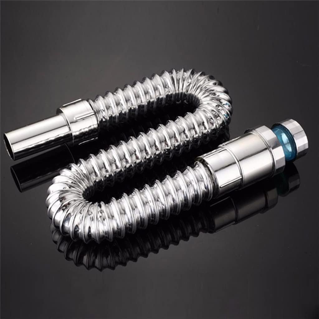 Made of thickened ABS material , very .Built-in steel wire.Retractable, free to bend.Chrome plated surface.drain pipe for bathroom, kitchen basin and laundry sink, etc.ABS engineering plastic + chrome electroplatednormal size: length: 37cm/14.57in, stretchable length: 77cm/30.31in, inner diameter: 3cm/1.18inPacking list:1x drain pipeDue to the light and screen setting difference, the item's color may be slightly different from the pictures.Please allow slight dimension difference due to different manual measurement.Large enough to drain quickly without clogging easily.