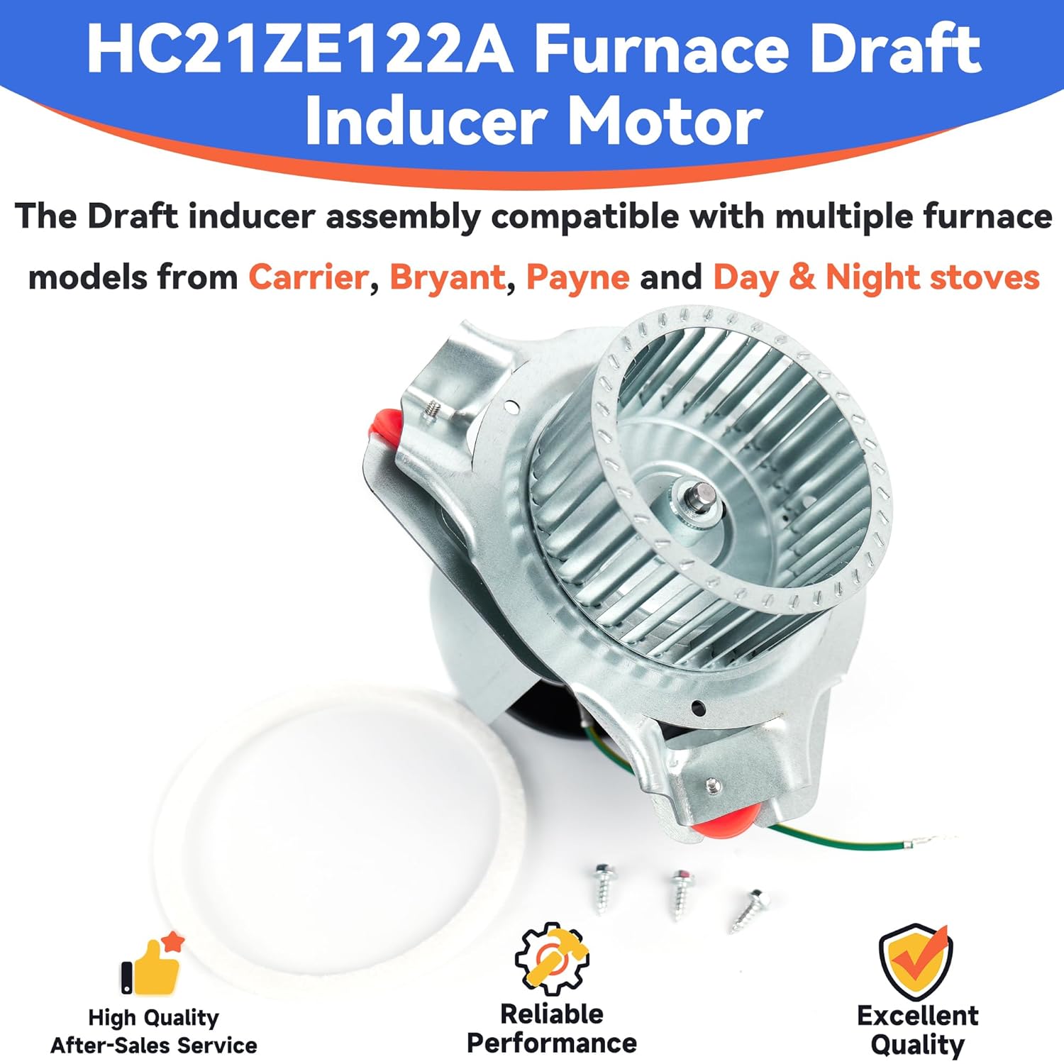 HC21ZE122A Draft Inducer Motor for Carrier, Bryant & Payne Furnaces, Replaces Jakel J238-112-11202 Blower Motor Assembly, Furnace Draft Inducer Motor Kit with Blower Wheel & Gasket Screws
