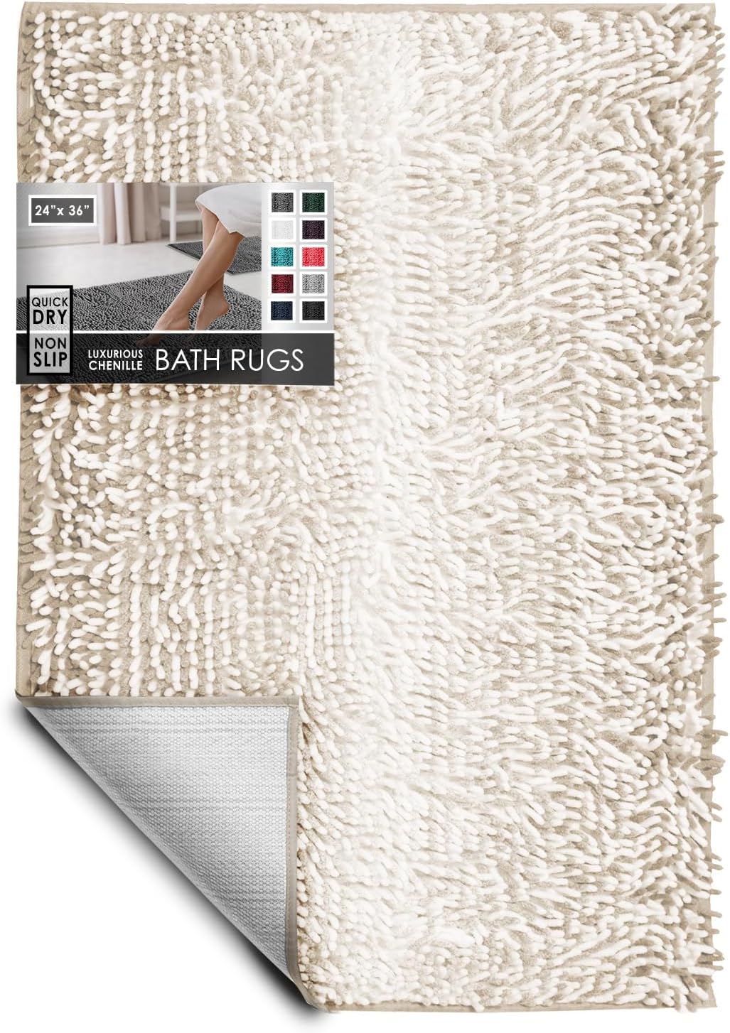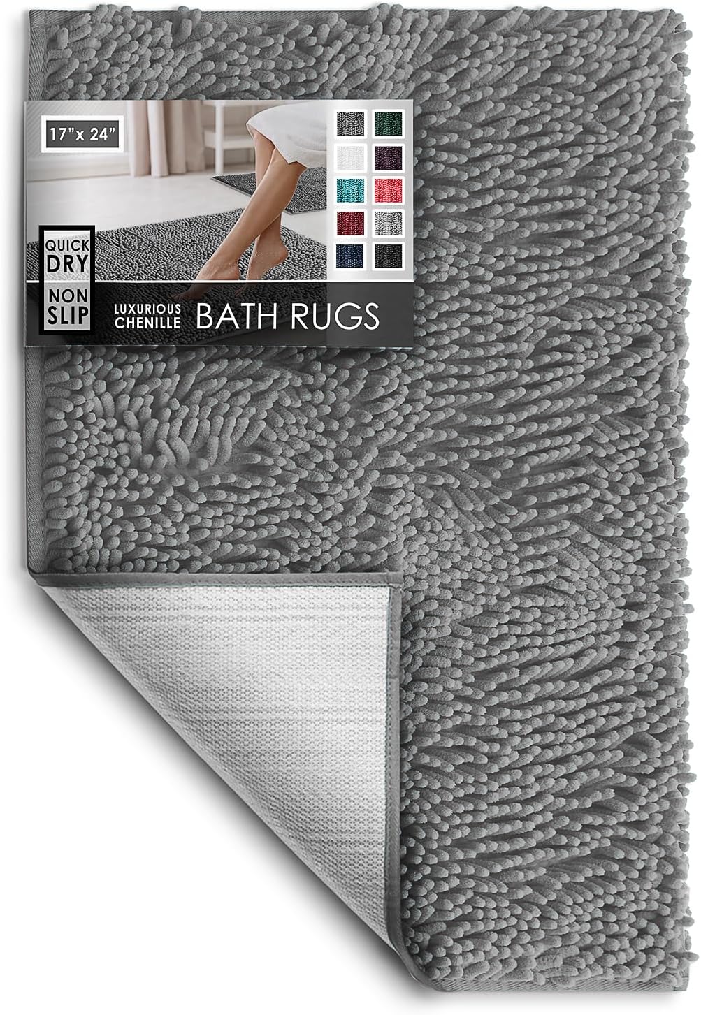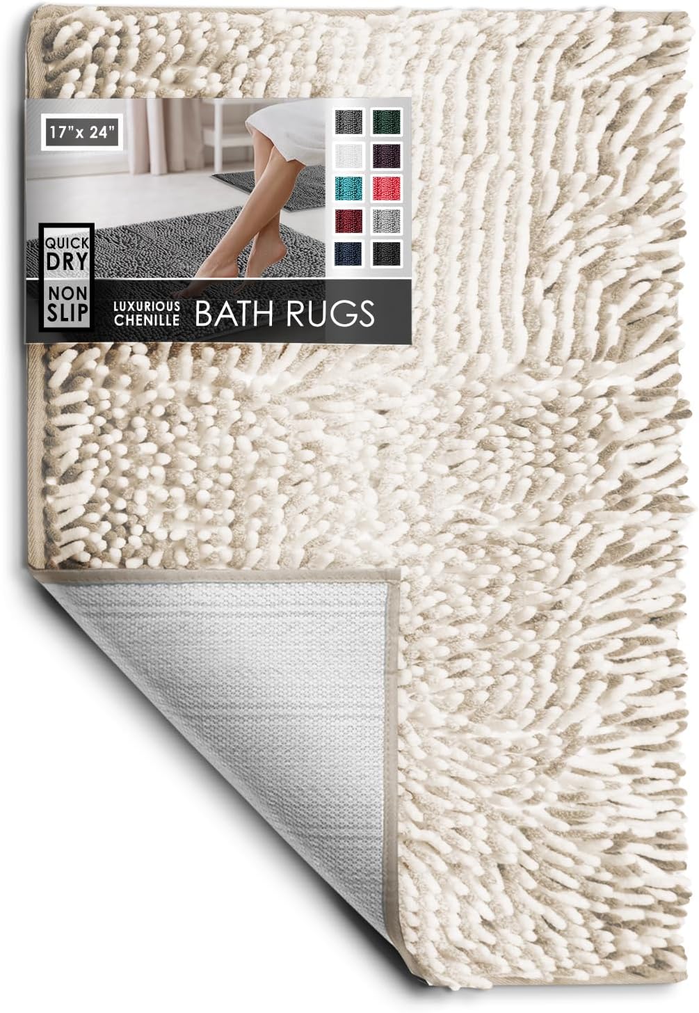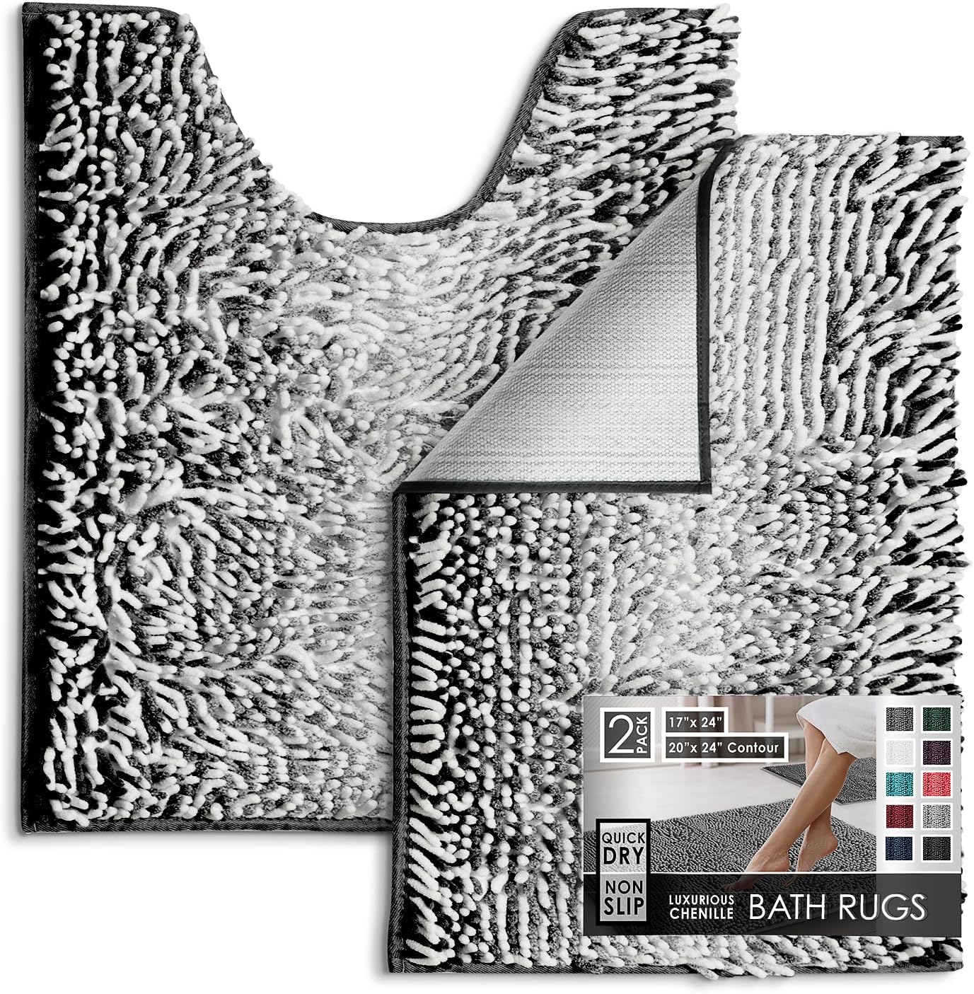 Hearth & Harbor Bathroom Rugs, Chenille Bath Mats for bathrrom - Machine Washable Bath Rugs, Non Slip Backing Rubber
