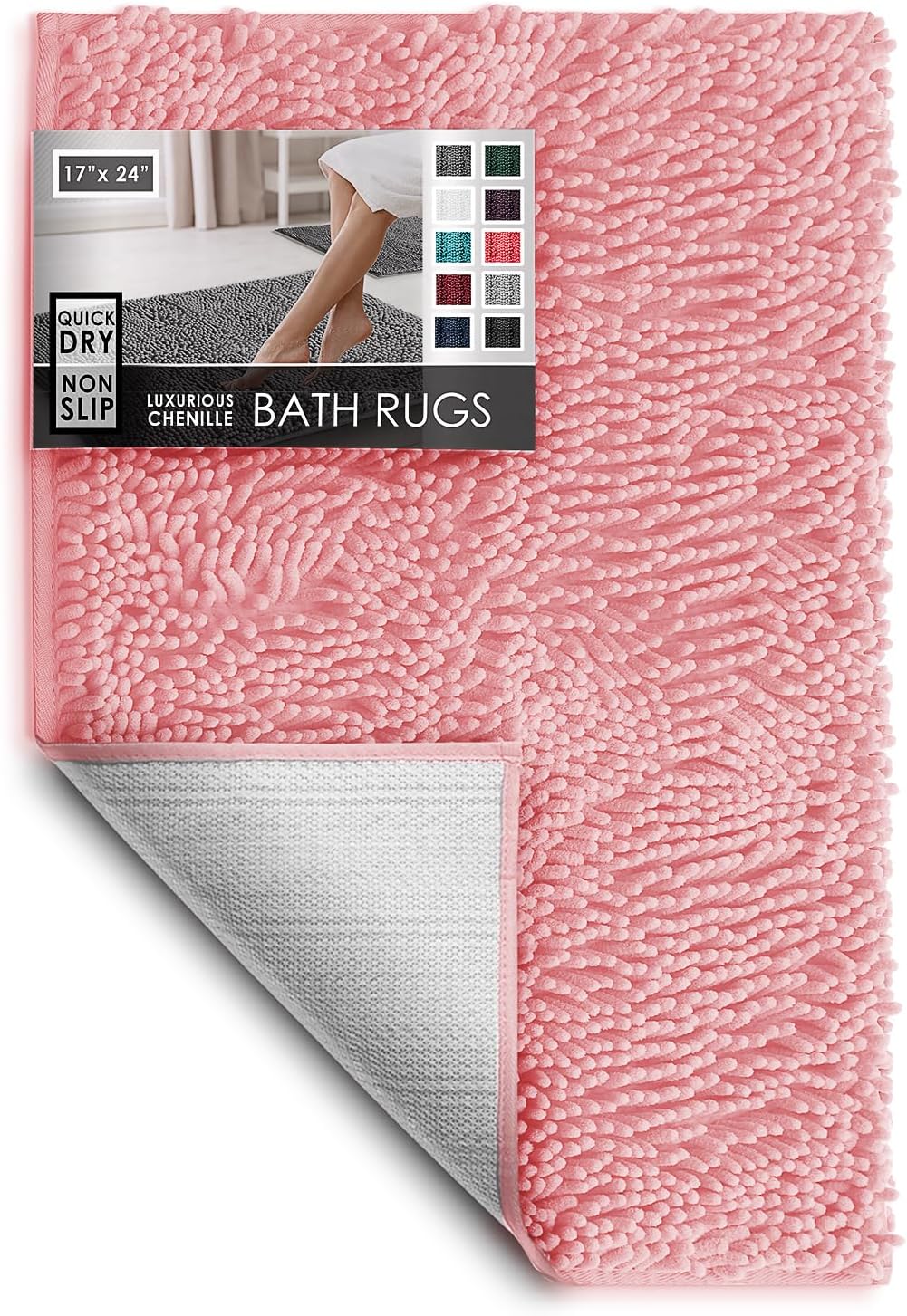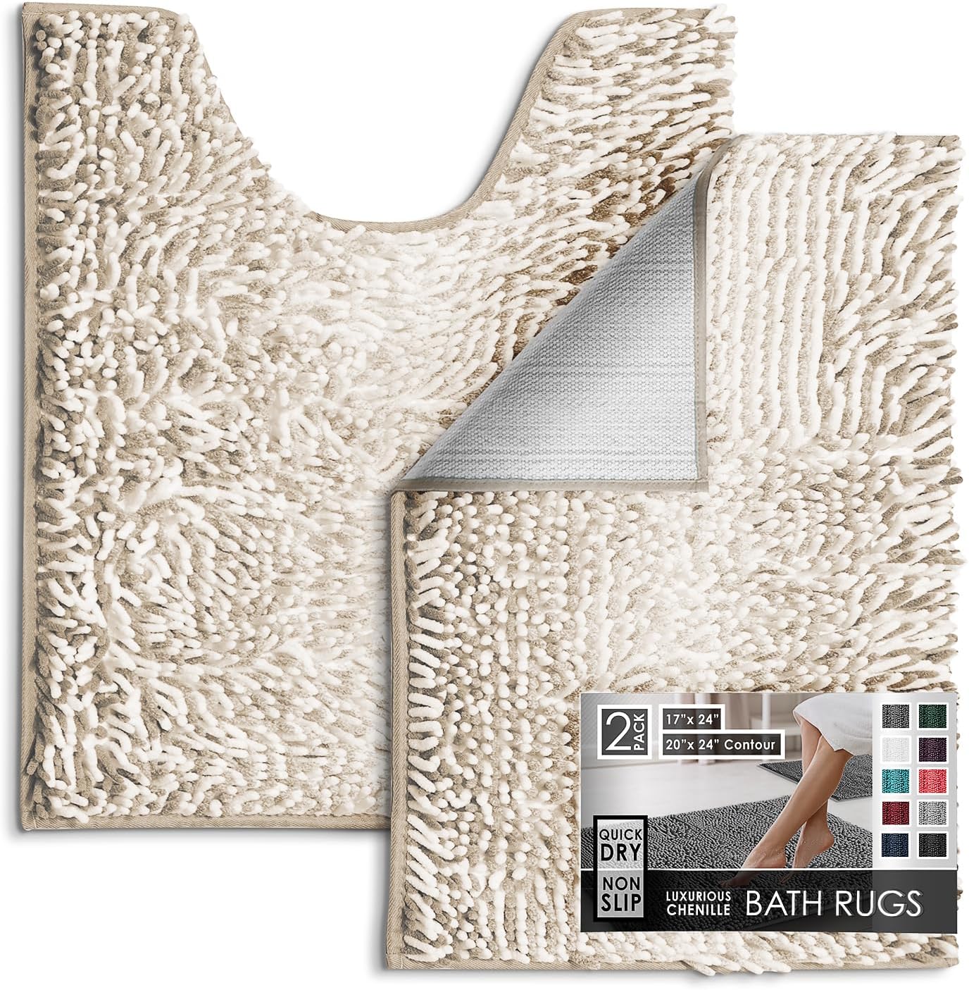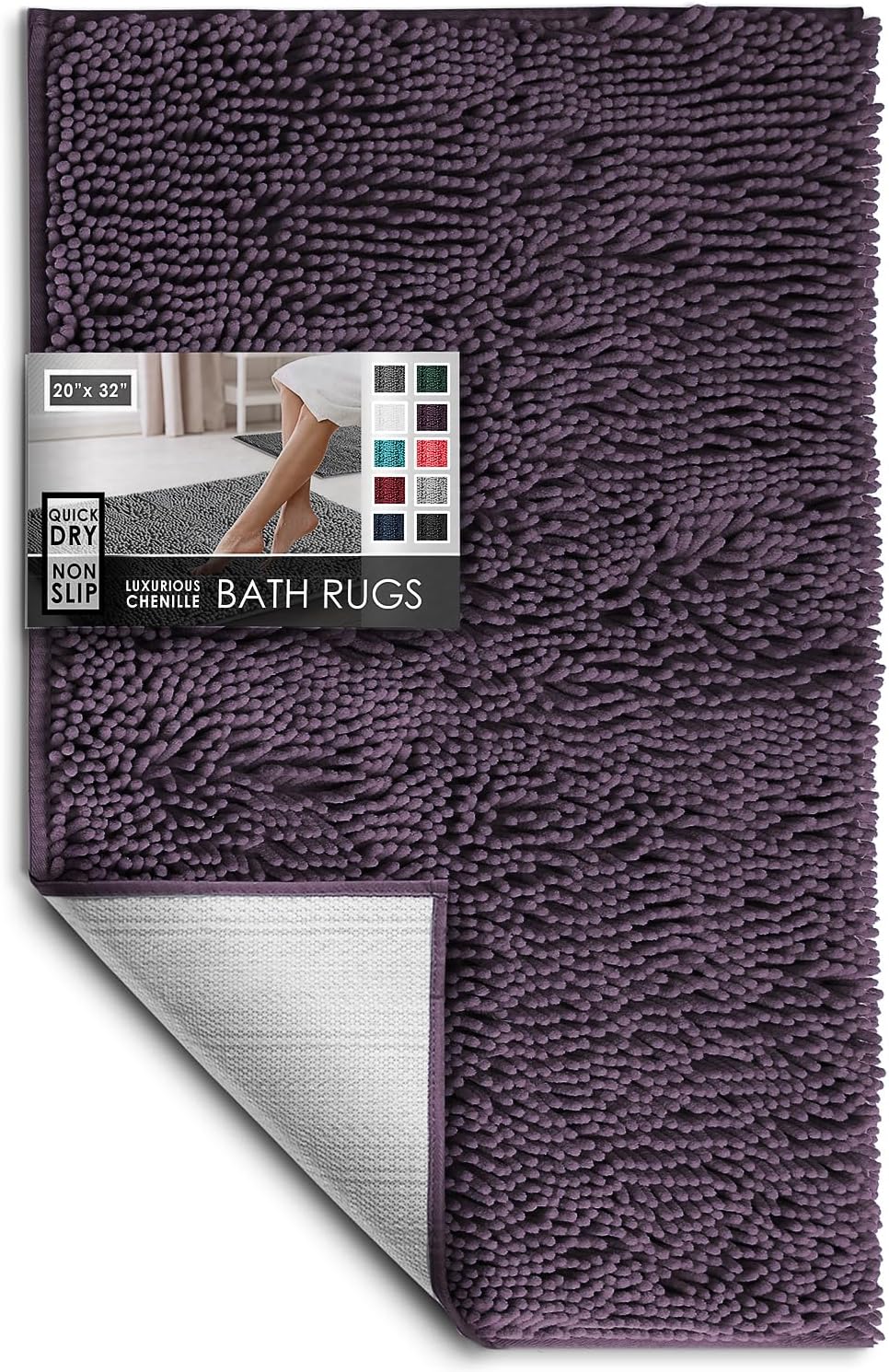 Hearth & Harbor Bathroom Rugs, Chenille Bath Mats for bathrrom - Machine Washable Bath Rugs, Non Slip Backing Rubber
