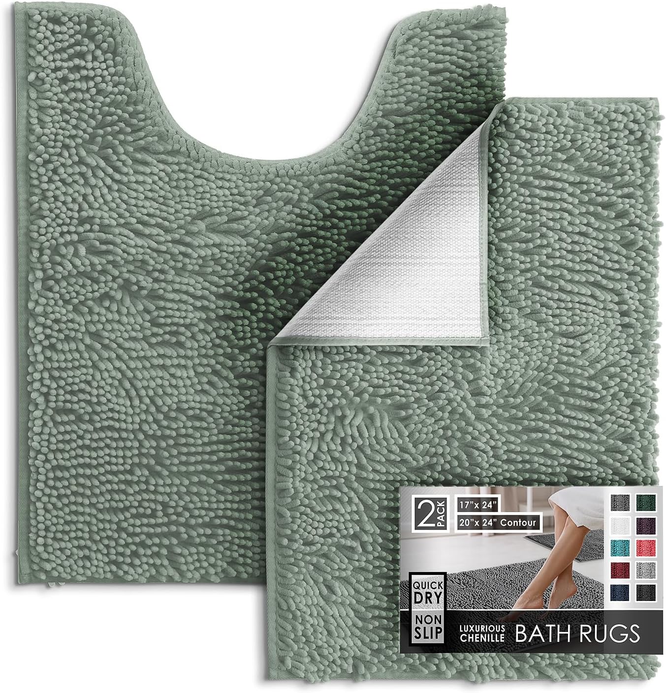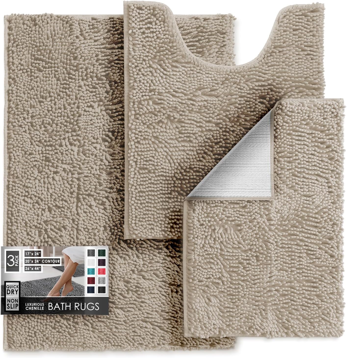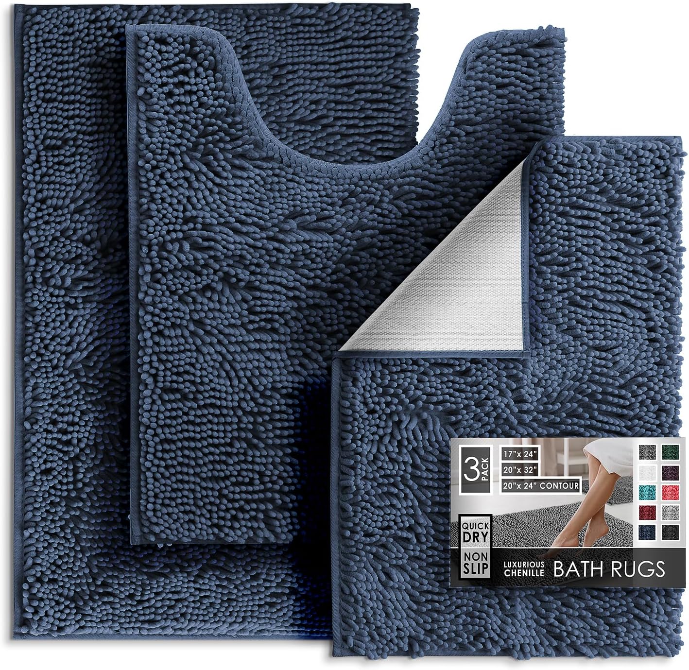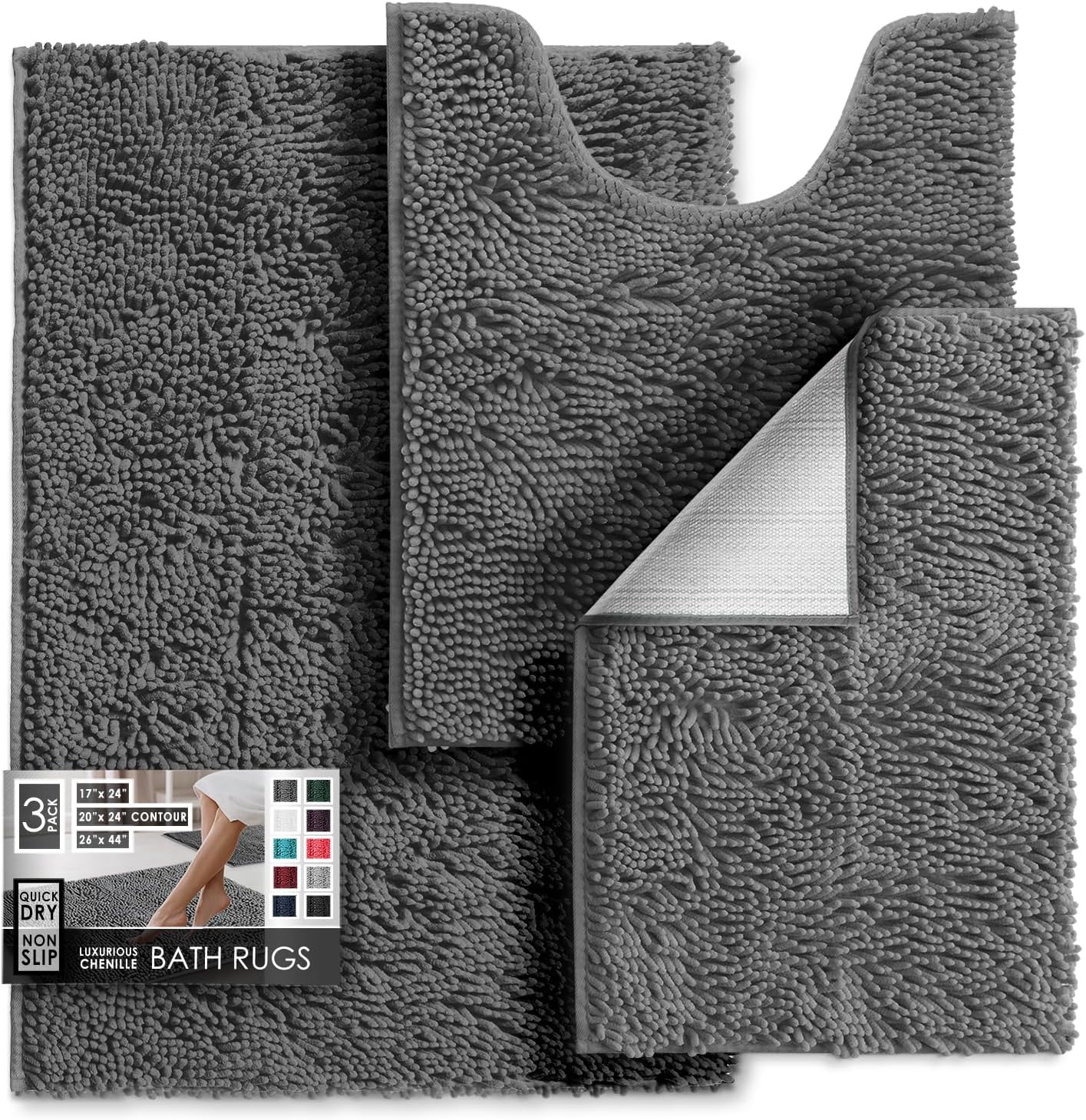 Hearth & Harbor Bathroom Rugs, Chenille Bath Mats for bathrrom - Machine Washable Bath Rugs, Non Slip Backing Rubber