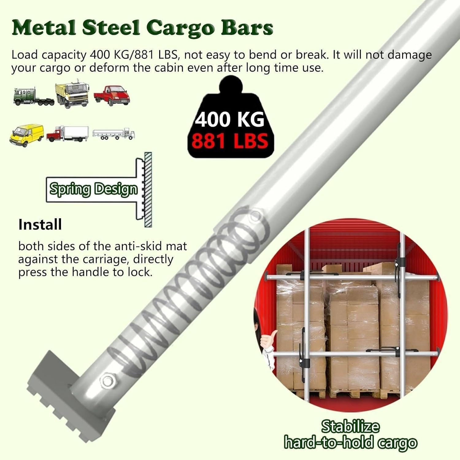 When transporting goods in an enclosed trailer or truck, securing your cargo is crucial to prevent damage and ensure safe delivery. Our Adjustable Ratcheting Cargo Bar is specifically designed to keep your freight securely in place, minimizing shifting during transit. This versatile cargo stabilizer bar is perfect for various vehicles, including family sedans, SUVs, minitrucks, and pickups, enhancing your hauling experience with reliability and ease. **Product Specifications:** - **Material:** Durable Steel - **Color:** Silver - **Bar Diameter:** 3.8cm (1.5in) - **Wall Thickness:** 1.5mm - **Length:** Adjustable for versatile use - **Load Capacity:** Supports up to 400KG (881LBS) - **Assembly:** No assembly required **Key Features:** 1. **Secure Locking Mechanism:** The safety clip ensures a tight lock, preventing accidental loosening during transport, giving you confidence on the road. 2. **Versatile Use:** Ideal for securing heavy equipment, recreational gear, groceries, and more, keeping your driving experience distraction-free. 3. **Compact Storage:** Lightweight design makes it easy to store when not in use, perfect for those occasional trips. 4. **Freight Stability:** This cargo bar effectively locks your load in place, preventing movement inside your trailer, ensuring safe transport. 5. **Load Divider:** Functions as a divider for freight that needs separation, enhancing organization within your trailer. 6. **Stability in Transit:** Designed to prevent cargo from sliding toward the cab, providing peace of mind while driving. 7. **Shock Absorption:** The integrated spring design helps absorb shocks, adding an extra layer of protection for your cargo. **Package Includes:** - 1 x Cargo Stabilizer Bar **Safety Notes:** - Keep out of reach of small children to avoid any hazards. - Slight measurement variations (1-3 cm) may occur due to manual measuring. Enhance your transport efficiency and ensure your cargo arrives safely with our Adjustable Ratcheting ...