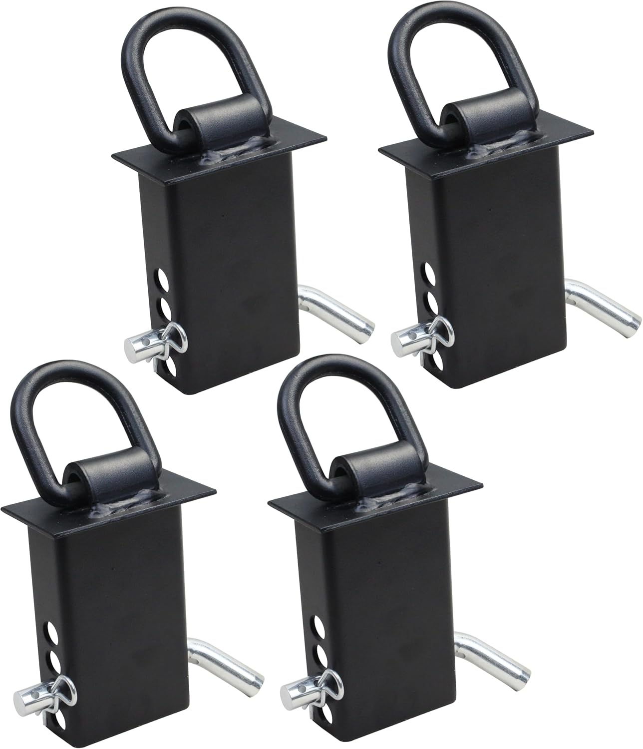 YHXCUIER Stake Pocket D Ring Tie Down Trailer Stake Pocket Accessories Heavy Duty Breaking Load 12000lbs for Trailers Trucks FlatbedsStake Pocket D Rings are made of heavy-duty solid steel with a corrosion-resistant black coating that prevents rust and extends the life of the pocket D-ring.Each stake pocket D-Ring has a ½” hitch pin with locking cotter pin and 4 pin holes for precise pin placement to ensure a perfect fit with your stake pocket. It is compatible with standard size universal stake bags for most utility trailers and trucks. Fit Standard 2" x 4" Stake PocketsThe D-rings in the stake pocket can serve as reliable fixing points for various hooks, such as grappling hooks, J-shaped hooks, S-shaped hooks, and shackles. It is also compatible with end accessories like ratchet belts, winch belts, or chain staplers.