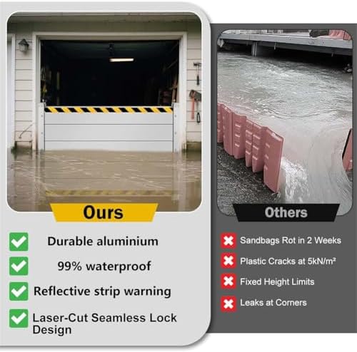 Introducing our innovative residential flood barriers, a practical and efficient alternative to traditional sandbags. Designed for quick deployment, these barriers can be set up in just minutes, providing essential flood protection when you need it most. Crafted with multiple sealing rubber strips, our flood barriers ensure superior waterproofing. The enhanced sealing design at the bottom prevents water penetration, keeping your property safe and dry during heavy rainfall. With a thoughtful design featuring black and yellow warning stripes on the top and sides, these barriers increase visibility and help prevent accidents in low-light conditions, making them a safer choice for your home. Our flood barriers are lightweight and easy to assemble, making them ideal for temporary flood control during the rainy season. They are perfect for use at doorways, garages, roads, and dams, safeguarding your home and belongings from potential water damage. With customizable lengths, you can stack the barriers to reach the desired height, accommodating your specific needs. Specifications include durable aluminum alloy construction, with a wall thickness of 4mm and a baffle thickness of 4 cm (1.6 inches). Each single waterproof baffle stands at a height of 20 cm (7.9 inches), ensuring effective flood prevention. Whether you're preparing for storm season or seeking a reliable solution for erosion control, our flood barriers offer versatility and peace of mind. Invest in our flood barriers today for a proactive approach to flood management and disaster preparedness.