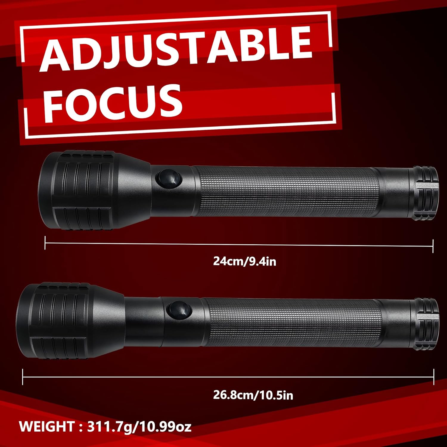 | Additional Features | Adjustable Focus, High Lumens, Zoomable, Water Resistant, 3 Operating Modes (High - Low), Weather & Shock Resistant, Easy to Use,, High Power, Non Slip Grip |