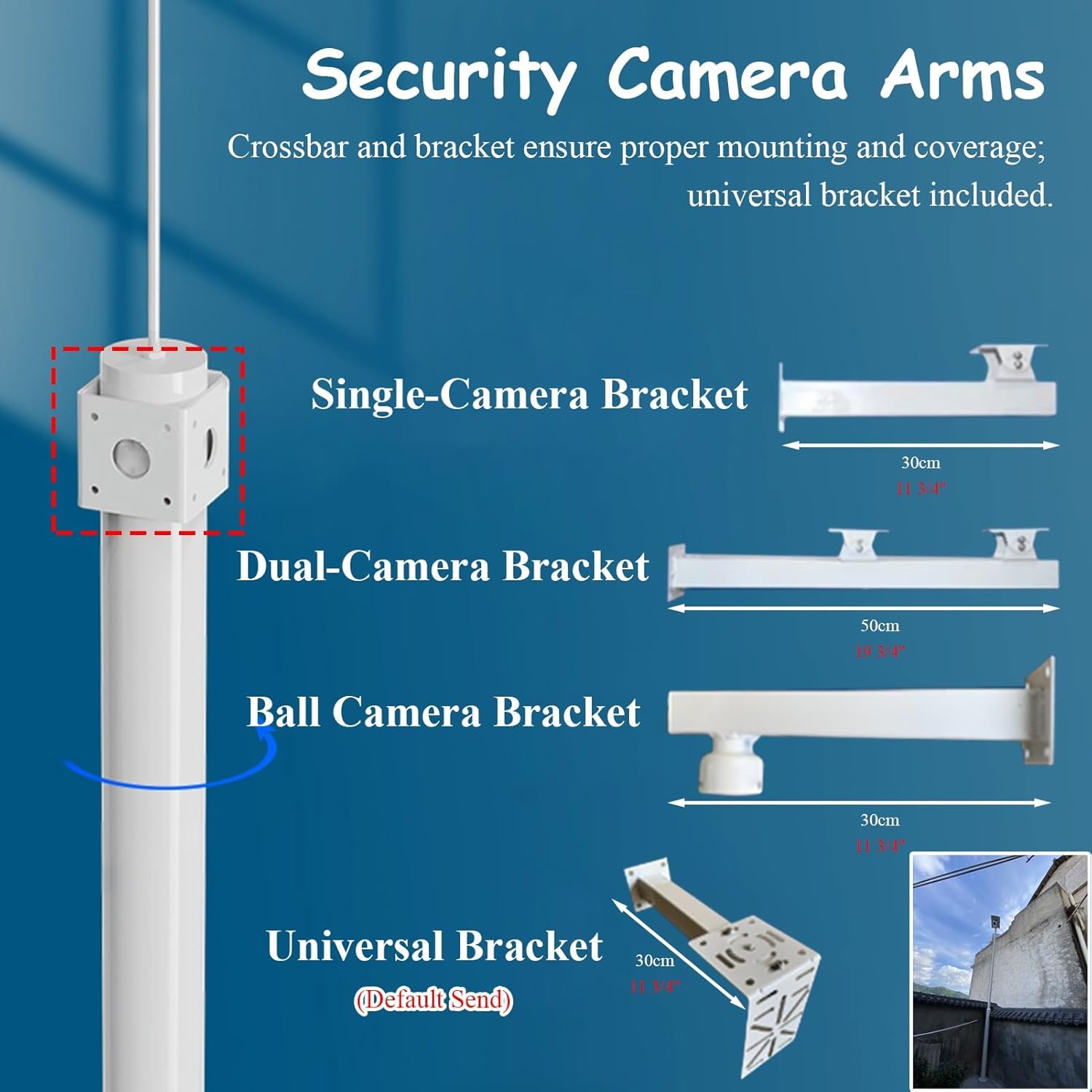 Introducing our premium Security Camera Pole, expertly engineered to provide reliable support for your surveillance needs across various environments. Constructed from high-quality galvanized steel, this weather-resistant pole ensures durability and longevity, making it an excellent choice for both residential and commercial applications. **Specifications:** - **Material:** Galvanized Steel - **Color:** White - **Height Options:** 2.5m (8.2ft), 3m (9.8ft), 3.5m (11.5ft), 4m (13.1ft), 4.5m (14.8ft), 5m (16.4ft), 5.5m (18ft), 6m (19.7ft) **Key Features:** - **Robust Construction:** Built to withstand diverse weather conditions, ensuring your security camera remains stable and secure throughout the year. - **Adaptable Mounting:** The versatile four-way top plate accommodates a variety of camera mounts, making it compatible with numerous security camera models for your convenience. - **Customizable Height:** Select from multiple height options to fulfill your specific surveillance requirements, whether monitoring a cozy backyard or a sprawling commercial property. - **Portable and Convenient:** The detachable, segmented design makes transportation and setup effortless, ideal for temporary installations or quick relocations. - **User-Friendly Installation:** Includes all necessary accessories for an easy, one-person setup, allowing you to enhance your security system without needing professional installation. - **Versatile Applications:** Suitable for homes, offices, warehouses, roads, and parking lots, this pole offers flexibility in securing any area that requires monitoring. **Package Includes:** - 1 x Security Camera Pole - 1 x Universal Camera Bracket - 1 x Ground Stake - All Mounting Accessories **Note:** Please allow for slight measurement discrepancies due to manual measurement. Color variations may occur based on screen displays. Elevate your security capabilities with our adaptable Security Camera Pole, thoughtfully designed to support your monitoring...