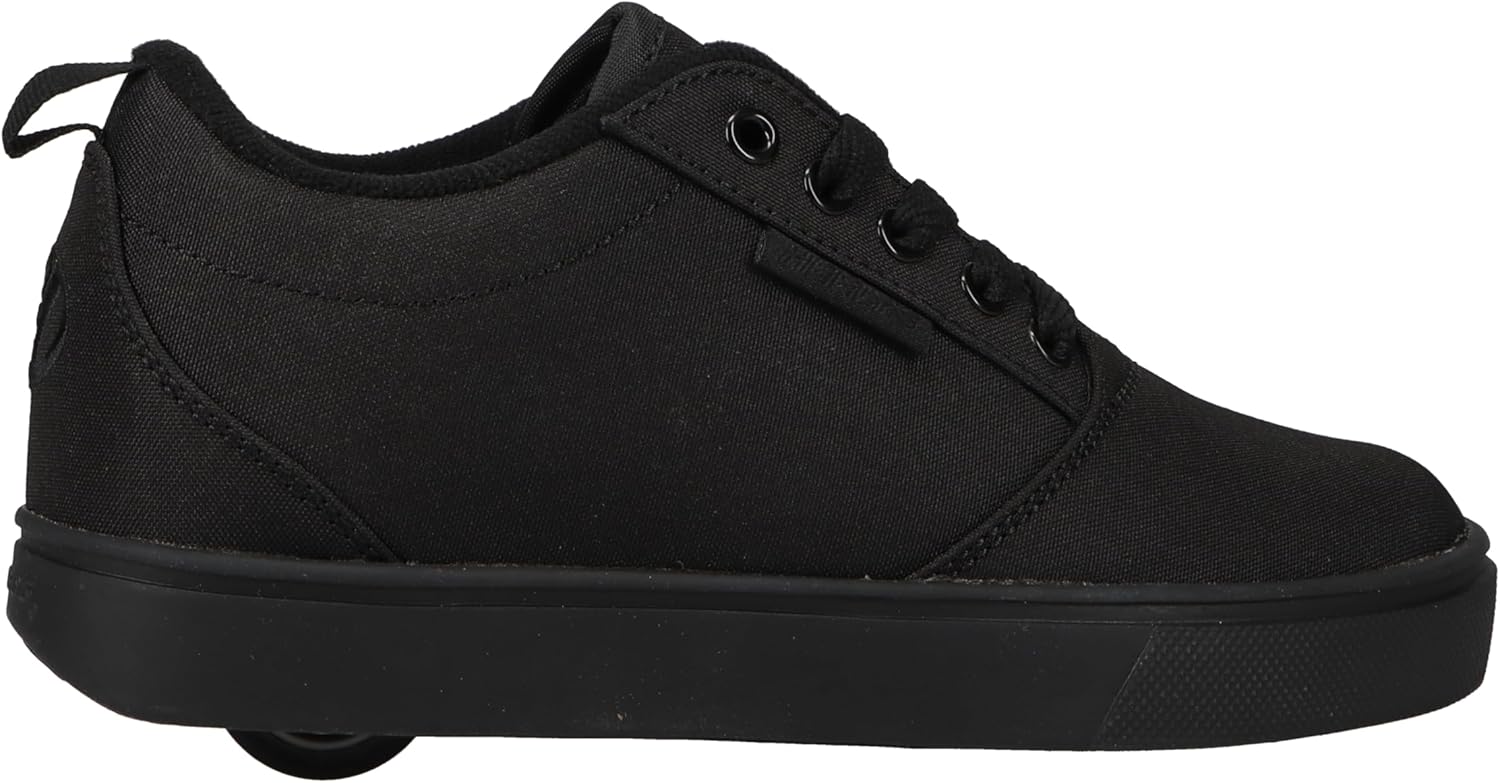Keep them on the go with the Heelys Pro 20 Skate Shoes. Featuring a canvas upper in a classic skate sneaker design with a round toe, this shoes includes a lace-up closure with metal eyelets and convenient heel pull tab. The contrast stitching adds a stylish touch, while the soft lining and cushioned insole ensure comfort. Equipped with low-profile wheels and ABEC 5 bearings, these sneakers offer smooth rolling. The durable traction outsole provides reliable grip.