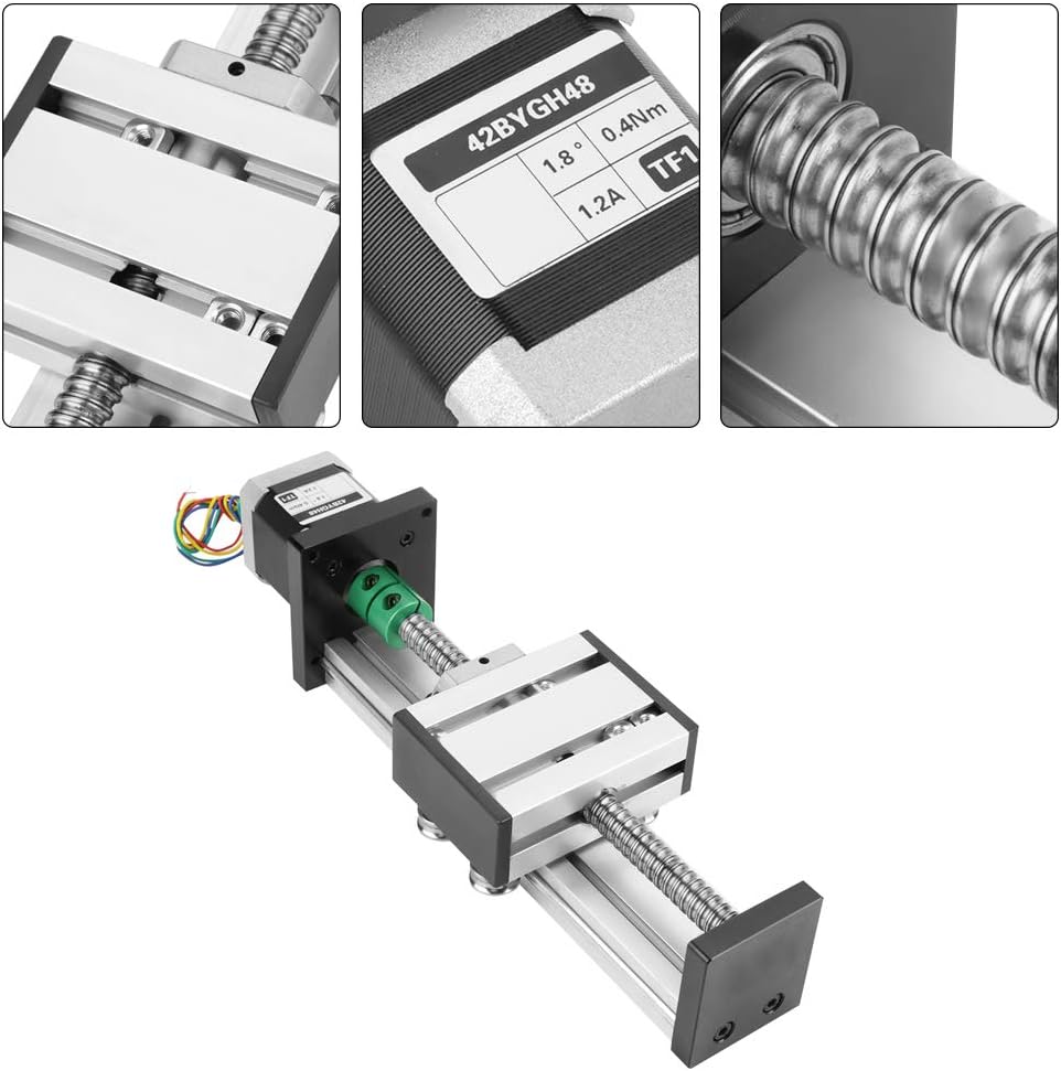 1. Made of metal with durable construction2. High precision, exquisite craft, smooth surface3. Long life, low coefficient of friction, high versatility4. Linear motion, with a small frictional resistance5. Linear shaft diameter is 12mm/0.47inch, and the effective stroke is 100mm/3.9inchSpec:Features:Made of metal with durable construction.High precision, exquisite craft, smooth surface.Long life, low coefficient of friction, high versatility.Linear motion, with a small frictional resistance.Linear shaft diameter is 12mm/0.47inch, and the effective stroke is 100mm/3.9inch.Specifications:Material: AluminumBoundary dimension: 40mmShaft diameter: 12mm / 0.47inchRated vertical load: 40KGRated horizontal load: 60KGAccuracy: 0.01mmEffective stroke: 100mm / 3.9inchBall screw length: 165mmSliding block: 60 x 80 x 30mm / 2.36 x 3.15 x 1.18inchPitch-row width: 68mm (max)Pitch-row length: 60mmScrew: M6Slide table size: 190 x 40 x 20mm / 7.48 x 1.57 x 0.79inchWeight: Approx. 1432gPackage Included:1 x Ball Screw Slide with a Stepper Motor