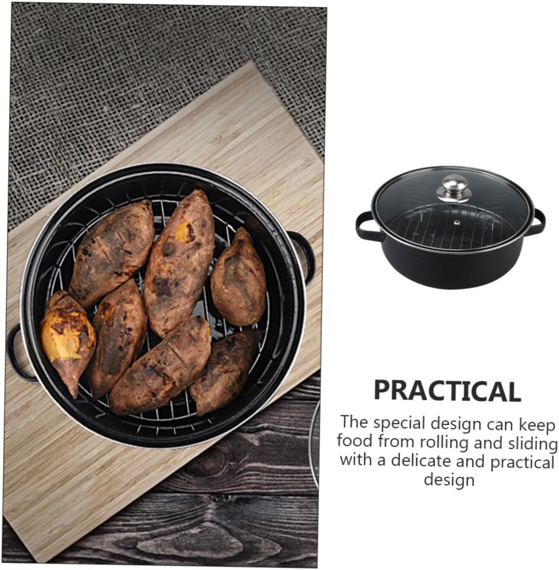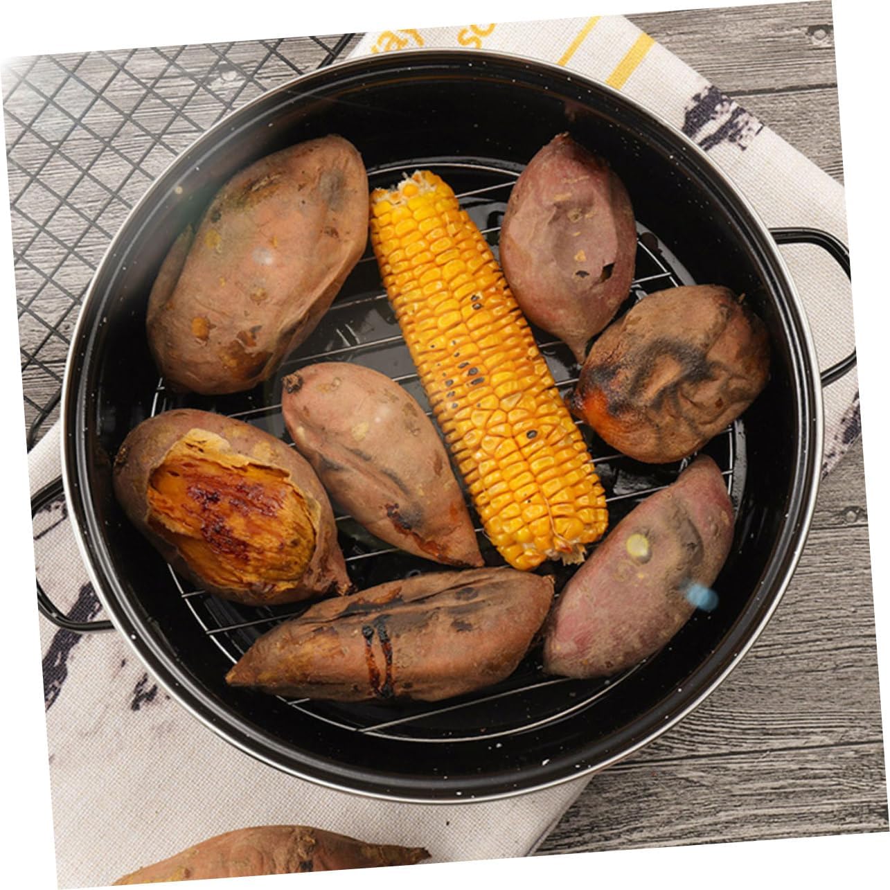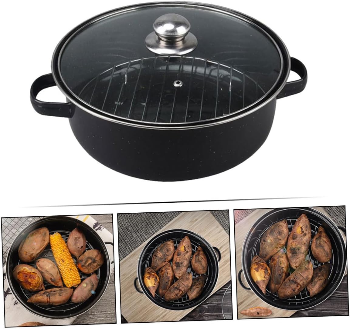 Package List 1 x pot with lid Features -Material:Glass, iron multi-function roasting pot -Size:32.00X28.00X14.00cm/12.58X11.00X5.50in multi-function roasting pan -Color:Black baking pan - The ergonomic double handles is more convenient to move and use, safe and secure, very practical enamel potato pot. - Can be used for roasting much food, such as potatoes, corns, sweet potatoes, chicken wing, Chinese chestnut, etc enamel baked pot. - The special design can keep food from rolling and sliding with a delicate and practical design turkey pan. - Cooking Pot can withstand high temperature, which is not easy to deform and break roasting pan. - Widely applied in home, food store, restaurant, camping and other places in need convenient roaster.Goods Informationconvenient roasting pot It can be used to bake sweet potato, corn and so on.kitchen accessories It can withstand high temperatures, which can be used for a long time.cooking pan Smooth surface for easier to clean and wash.cooking supply want to have a multi-functional Cooking Pot? If so, our covered roaster is carefully prepared for you