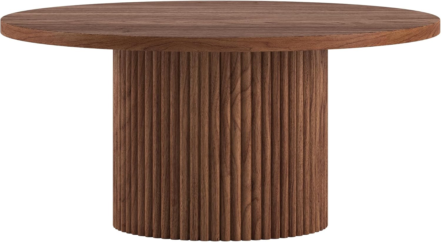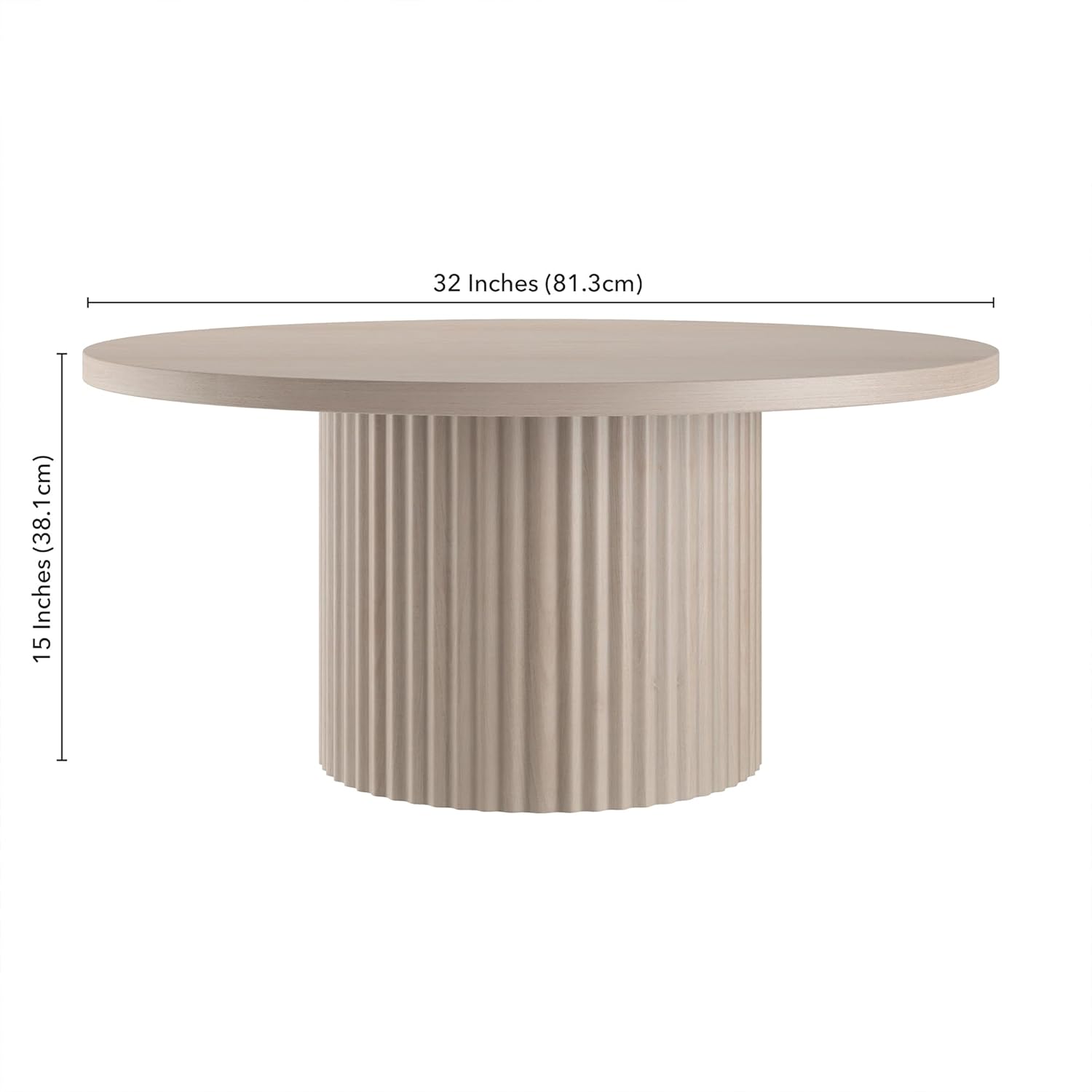 Refined and space-conscious, the Henn&Hart 32" Round Wooden Reeded Pedestal Coffee Table blends modern elegance with everyday practicality. With its sleek circular tabletop and streamlined fluted pedestal base, this coffee table delivers both style and function in equal measure, ideal for smaller spaces, apartments, or open-plan seating areas. The distinctive fluting adds a subtle yet sophisticated texture, enhancing your room's aesthetic while cleverly minimizing the appearance of dust or minor scuffs for a consistently polished look. Its 32-inch round surface is perfect for hosting drinks, displaying décor, or holding your everyday living room essentials, all while enhancing the flow of your space. A sturdy single-column pedestal design anchors the table while maintaining a clean, uncluttered look. The smooth, rounded edges make it especially suitable for high-traffic areas or family-friendly environments where safety and softness are priorities. Whether you're furnishing a cozy apartment or upgrading your modern living room, the Henn&Hart pedestal coffee table adds a bold, elegant presence without overwhelming your space. Built for everyday durability and simple to assemble, it’s a timeless accent that brings form and function into perfect balance.